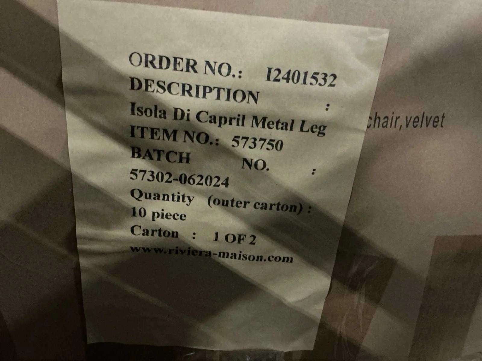 1x tafelframe; 1x Isola di Caprit metal leg stoel; 3x verpakking met glasplaat; op 1 pallet