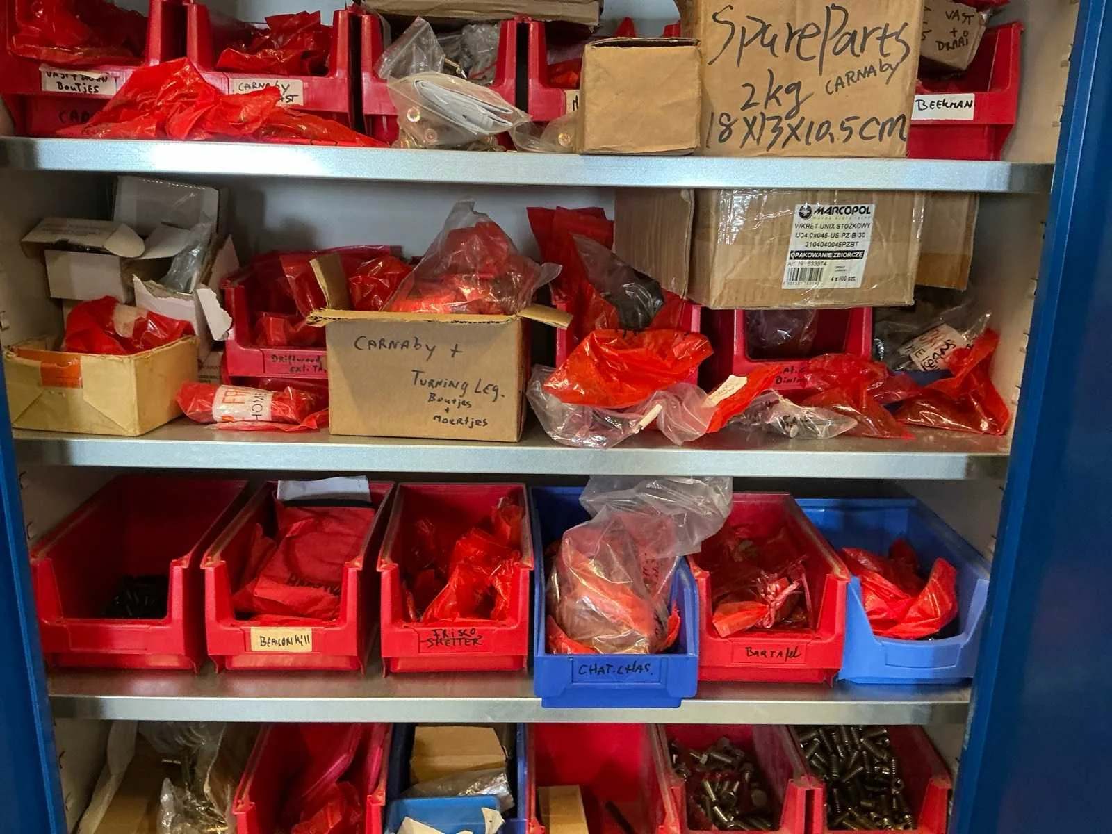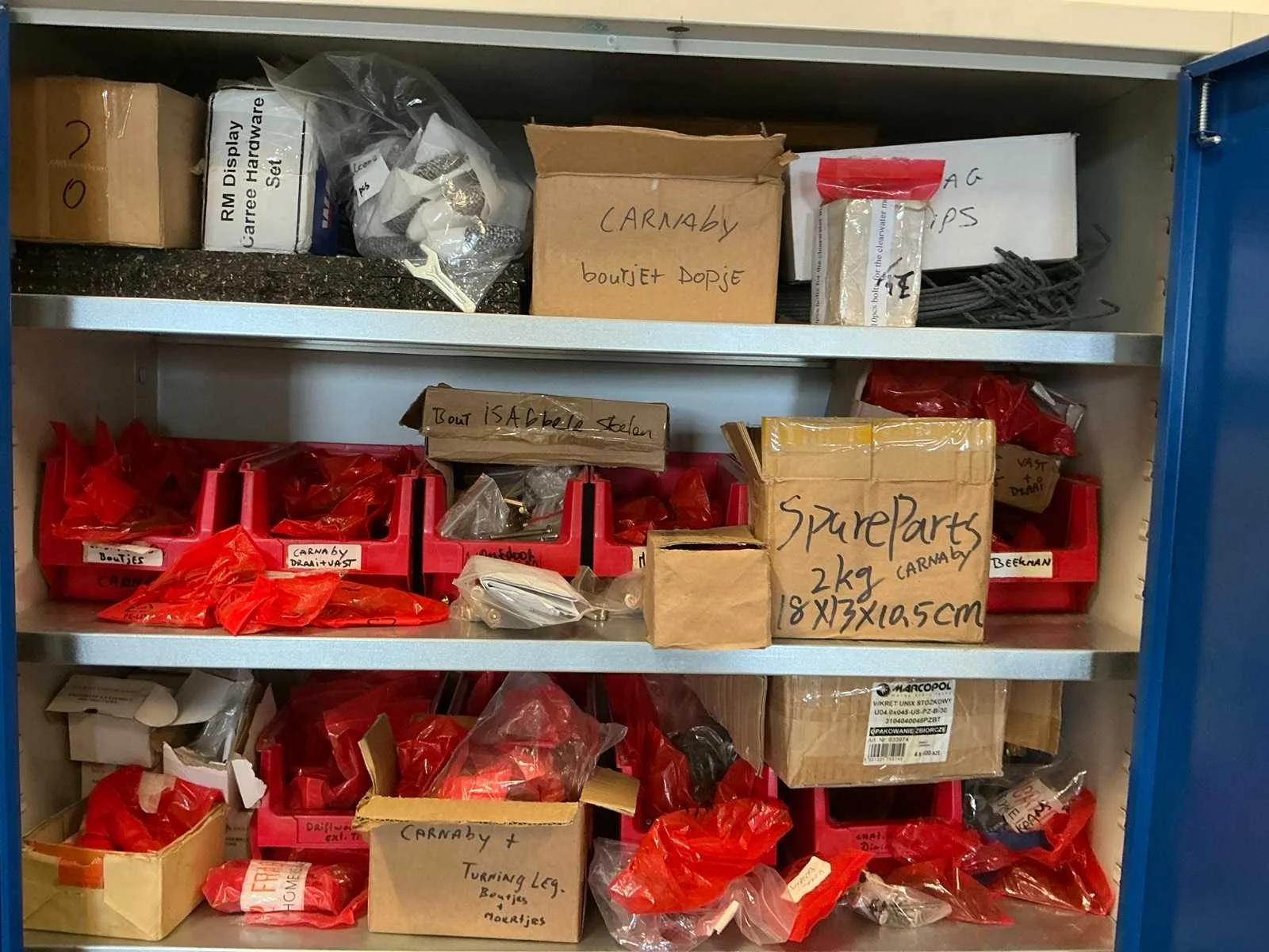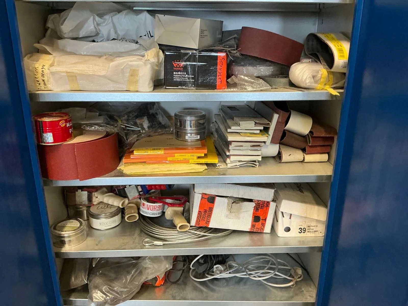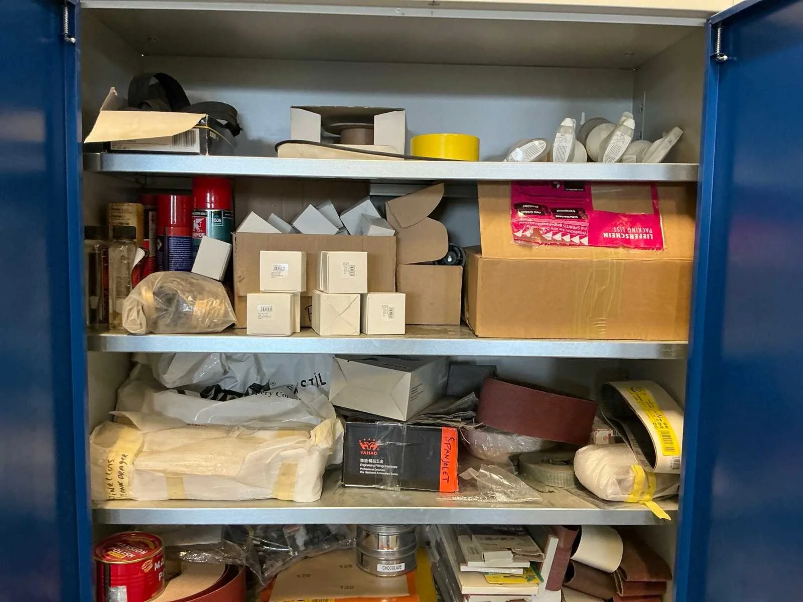 Zonder sleutel; met inhoud; inhoud bestaande uit diverse handgereedschappen en divers meubelbeslag Lengte: 42 Breedte: 93cm Hoogte: 195cm