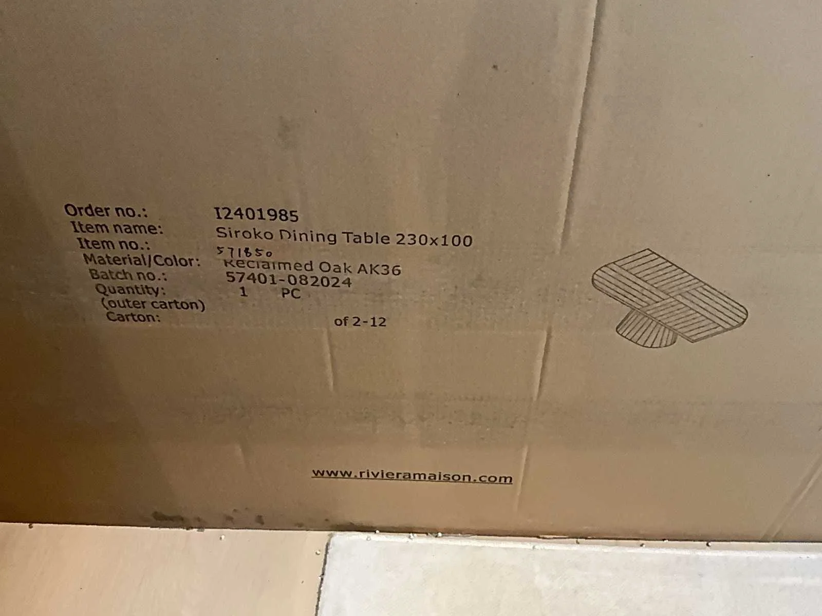 2 Colli. Merk: Rivièra Maison Model: Siroko Lengte: 230cm Breedte: 100cm Materiaal: Gerecycled eikenhout.