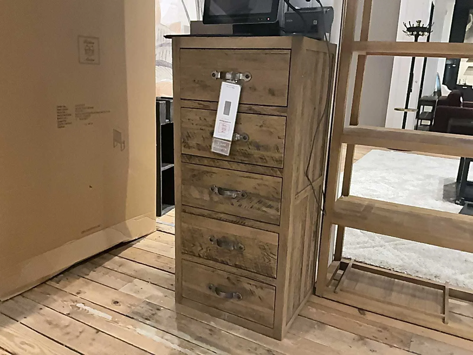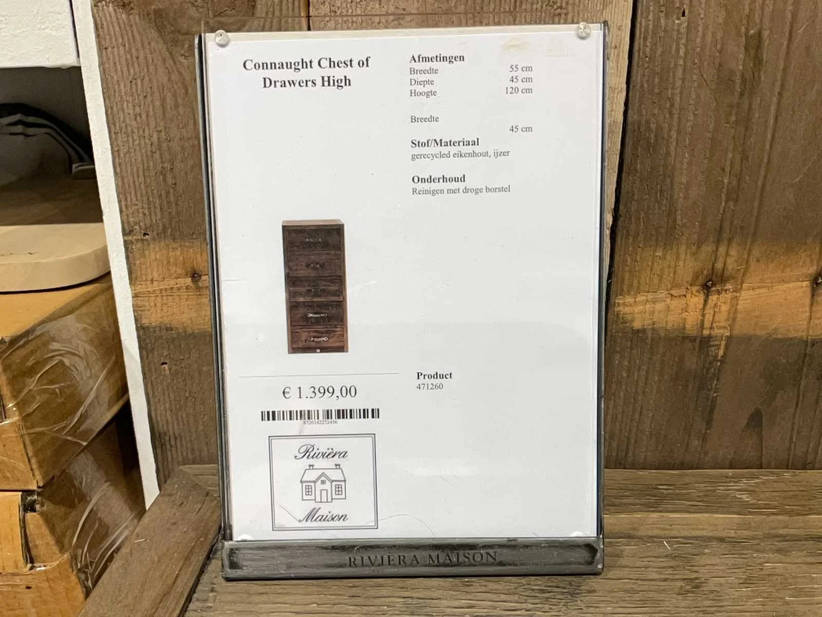 Dit kavel betreft een showmodel. Merk: Rivièra Maison Model: Connaught Breedte: 55cm Hoogte: 120cm Diepte: 45cm Materiaal: Gerecycled eikenhout en ijzer
