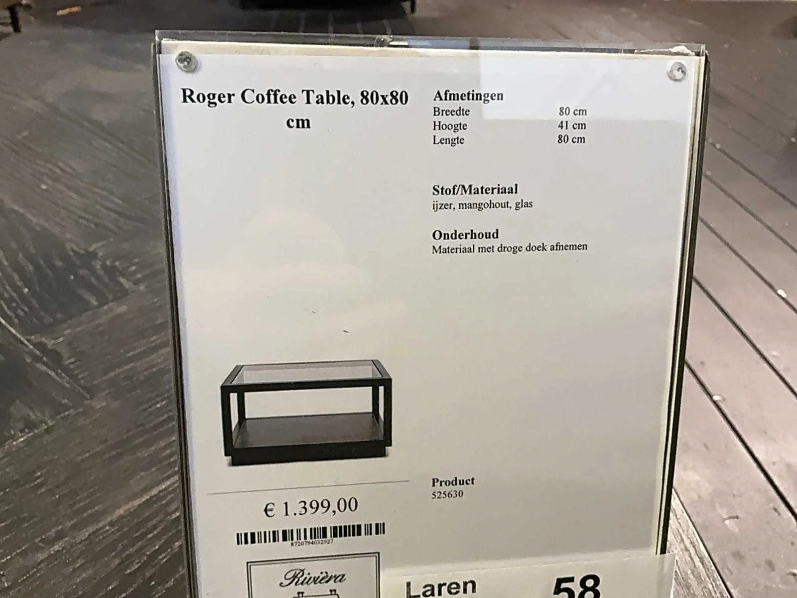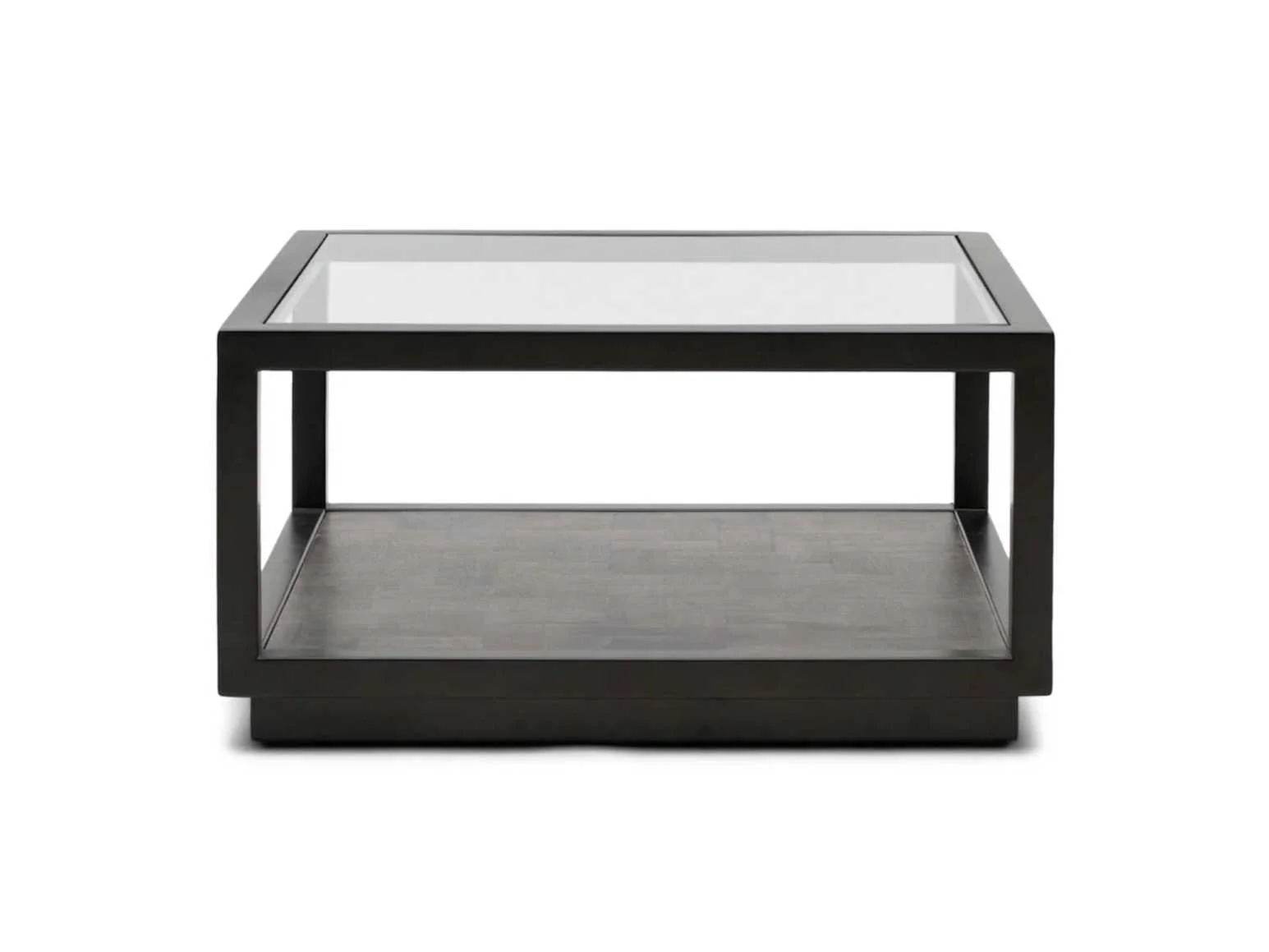 Dit kavel betreft een showmodel. Merk: Rivièra Maison Model: Roger Lengte: 80cm Breedte: 80cm Hoogte: 41cm Materiaal: IJzer, mangohout, glas