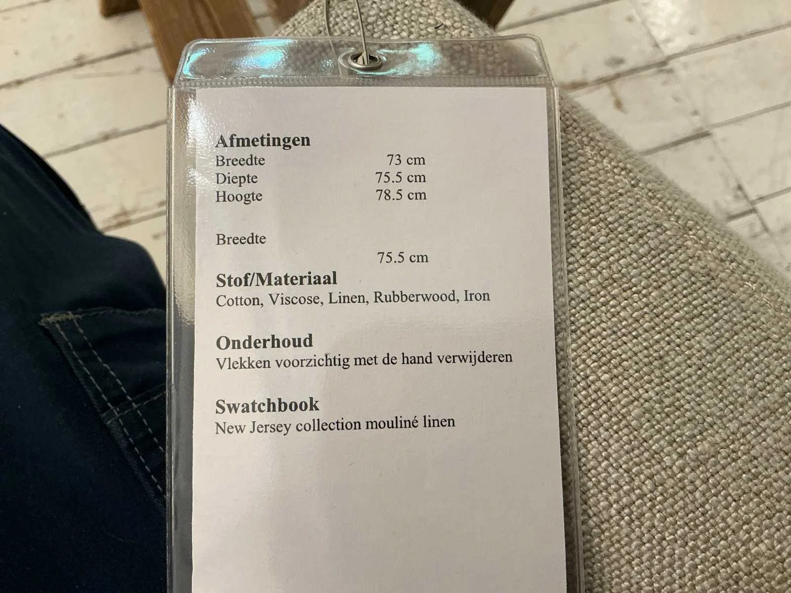 Draaibaar. Kavel betreft een showmodel. Merk: Rivièra Maison Model: Huntington Lengte: 75.5cm Breedte: 73cm Hoogte: 78.5cm Zithoogte: 56cm Materiaal: Katoen, Viscose, rubberhout, mouline linnen