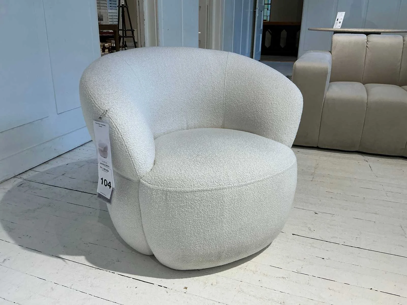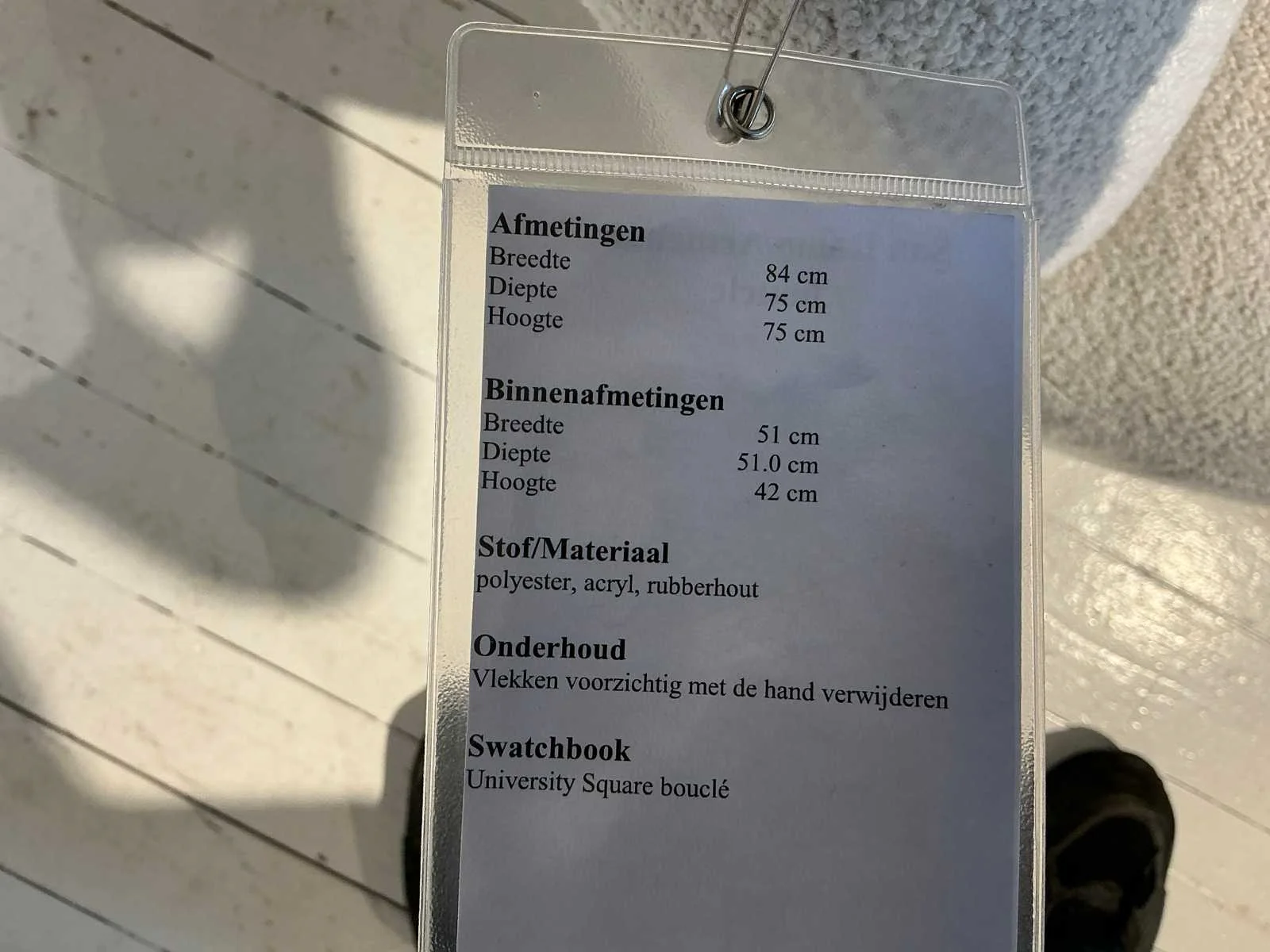 Dit betreft een showmodel Merk: Rivièra Maison Model: San remo Product type: boucle Kleur: Simply white Lengte: 84cm Breedte: 75cm