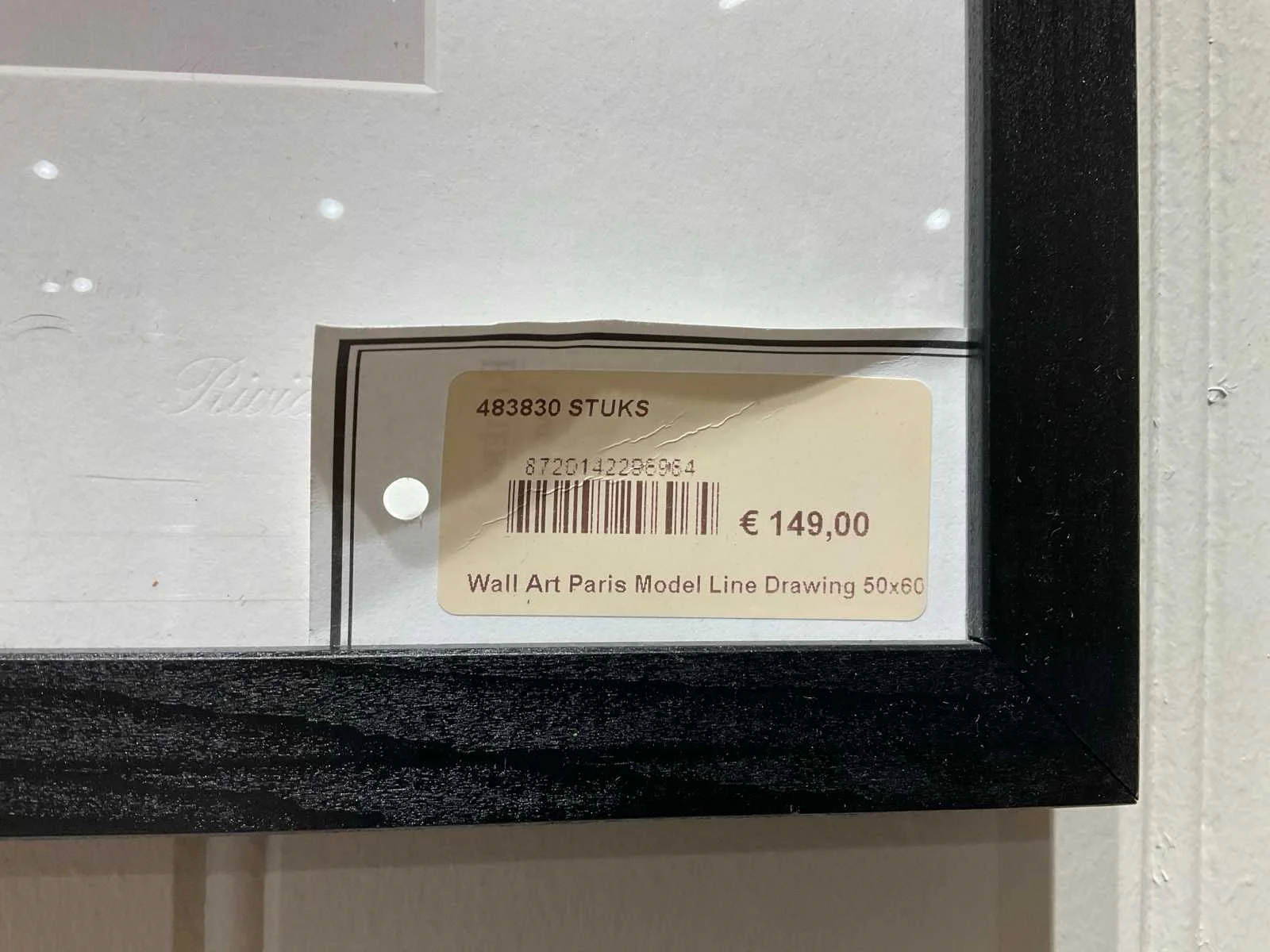 In houten lijst. Dit kavel betreft een showmodel. Merk: Rivièra Maison Model: Paris model line drawing Lengte: 53cm Hoogte: 63cm