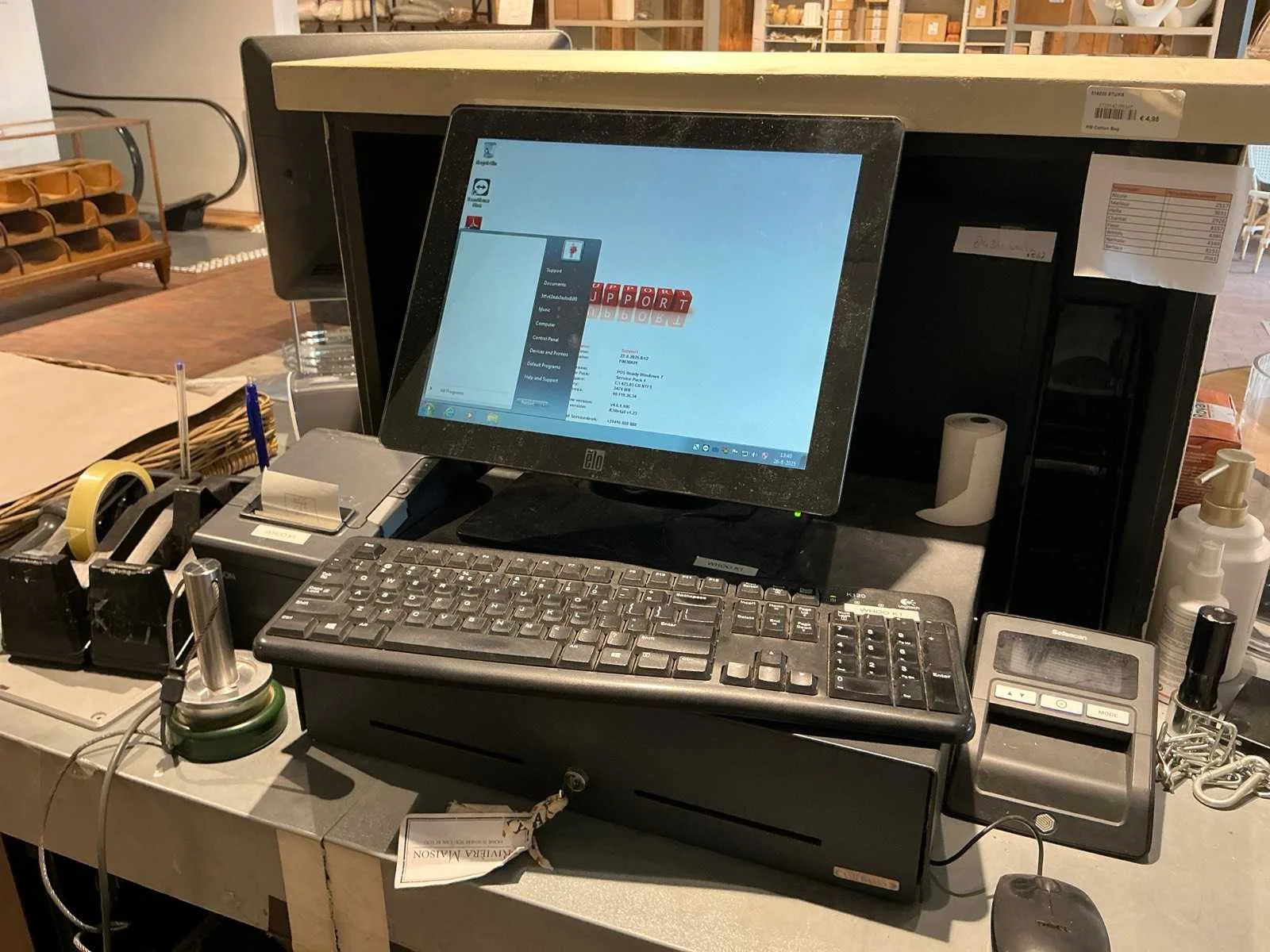 Bestaande uit: Elo touchscreen monitor, kassalade, cash tester, Epson bonnenprinter, Symbol barcodescanner en een Yomani pinapparaat. Zonder computer.
