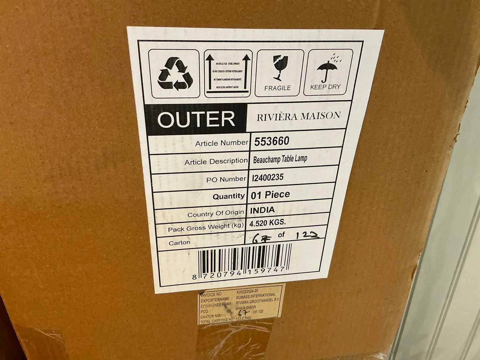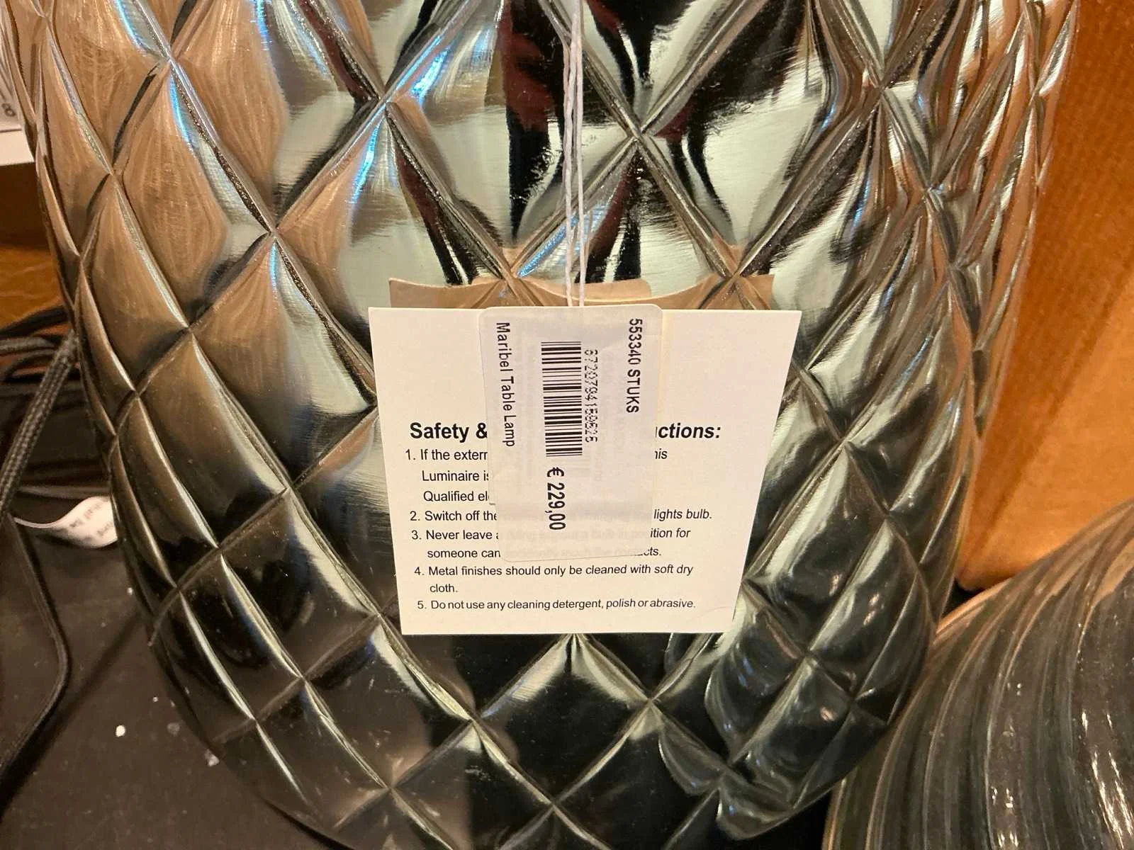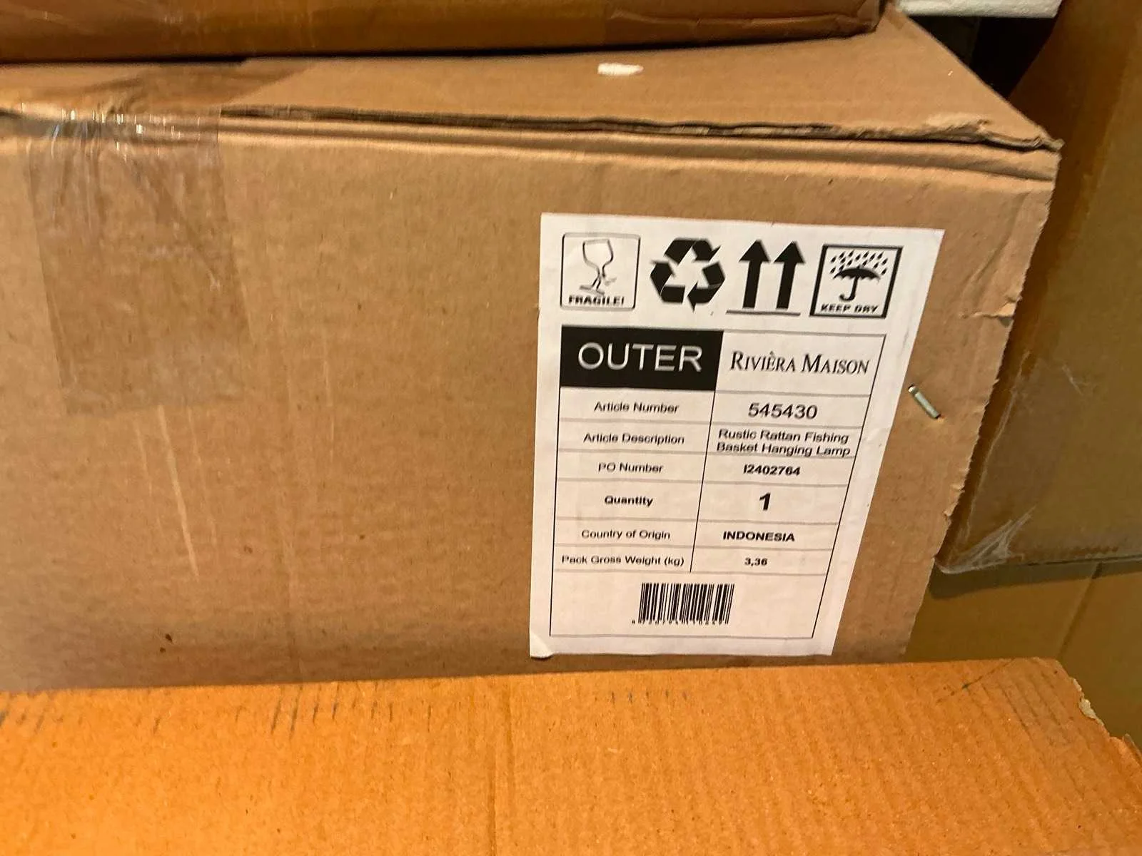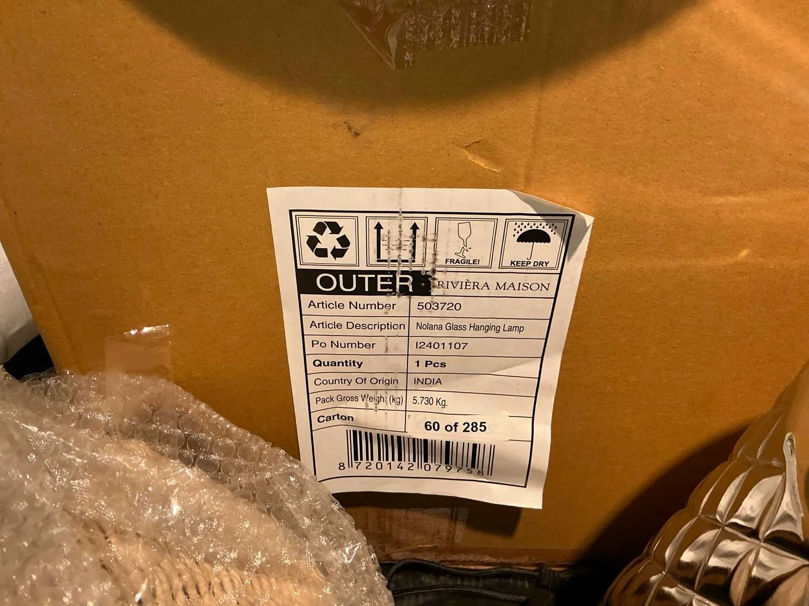 Verschillende soorten en maten ongebruikt in doos en showmodellen bestaande uit vloerlampen, hanglampen, wandlampen en een lampenkap. Dit kavel betreft showmodellen. Merk: Rivièra Maison