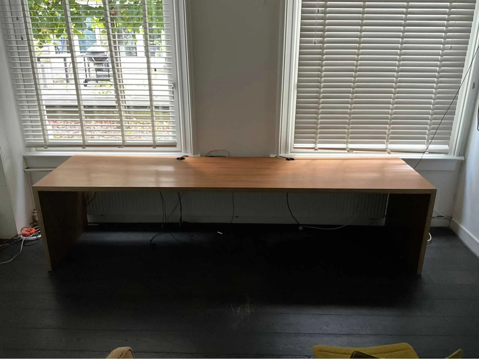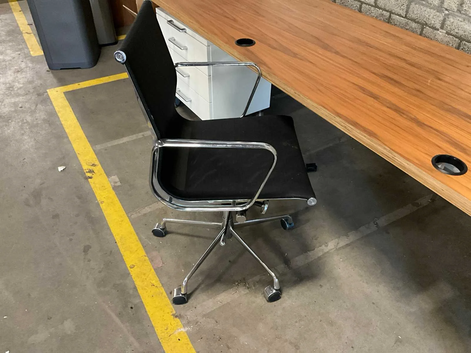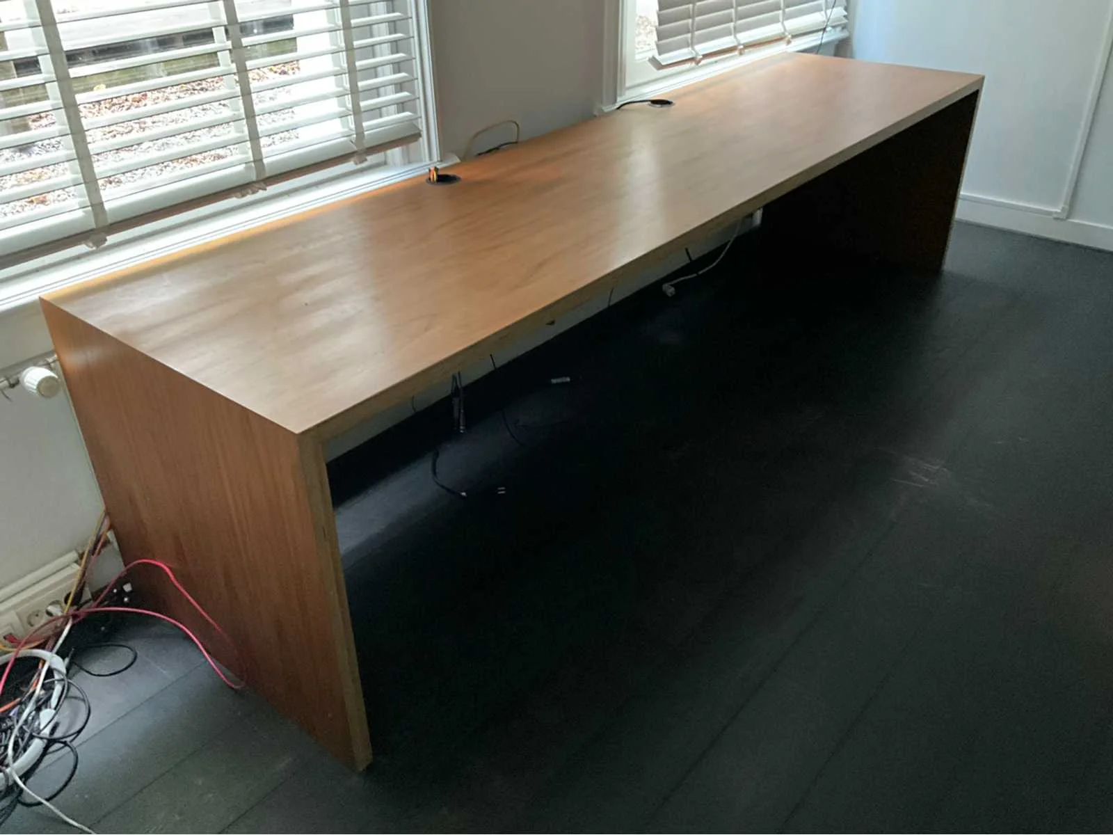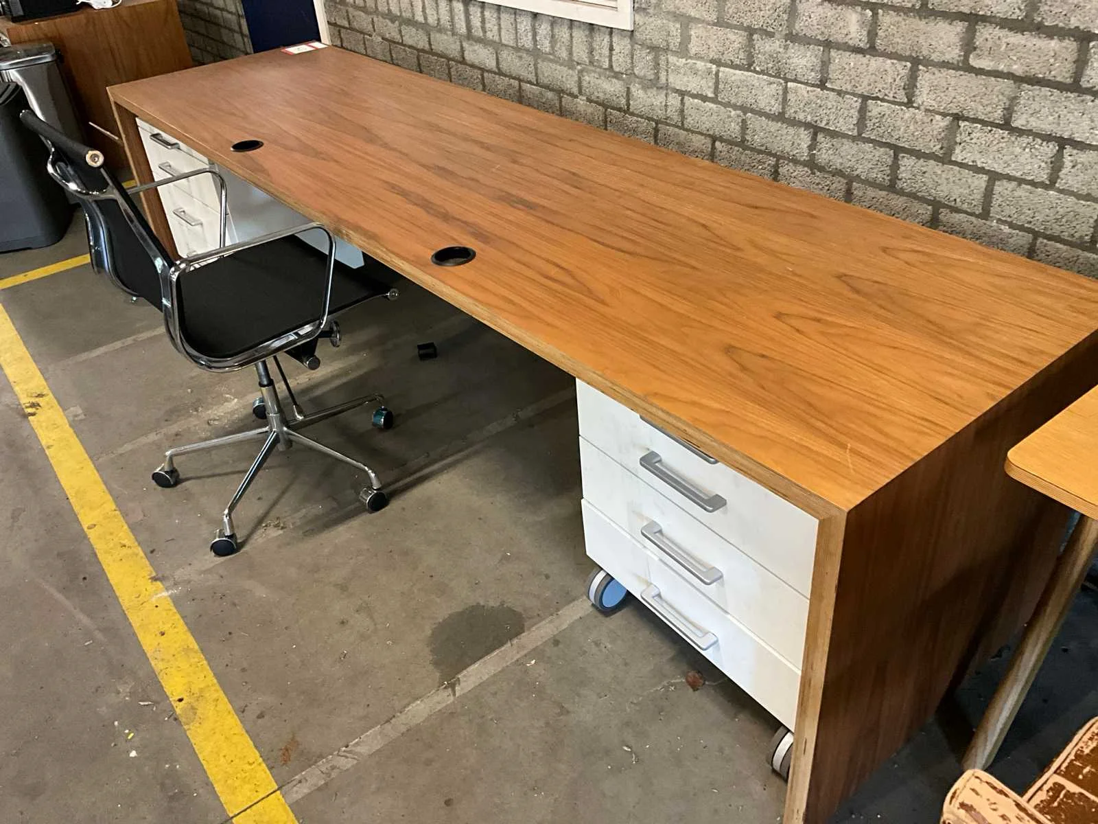 Voorzien van 2 verrijdbare ladeblokken en 1 stuks design bureaustoel merk Alias rollingframe alu van ontwerper Alberto Meda Type: Hout Lengte: 305cm Breedte: 80cm Hoogte: 75cm