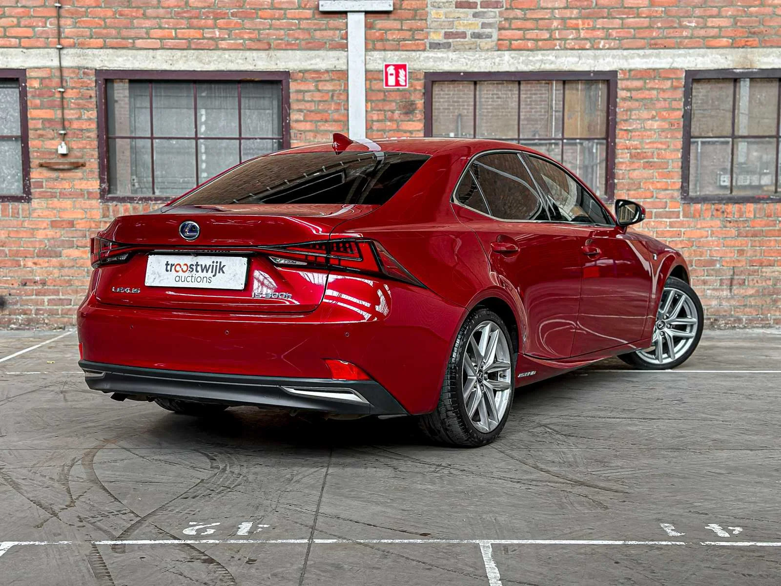 Kenteken: J-450-FJ Merk: Lexus Model: IS Type: 300h Hybrid F-Sport Line Afgelezen kilometerstand: 226291km Cilinderinhoud: 2494cc Vermogen (kW): 133kW Brandstof: Hybride (Benzine & Elektriciteit) Chassisnummer: JTBH5D2305067218 Laadvermogen: 0kg NAP status: Geen oordeel Datum eerste toelating: 2017-11-15 Datum eerste toelating (NL): 2020-07-15 APK vervaldatum: 2026-04-09 Vermogen (pk): 181hp Aandrijving: Voorwielaandrijving Aantal zitplaatsen: 5 Kleur: rood Transmissie: Automaat Stuurwiel: Links gestuurd Emissieklasse: 6 Aantal deuren: 4 Ledig gewicht: 1595kg Bruto BPM (NL): 2614€ Aantal cilinders: 4 Carrosserie: sedan Nationaliteit documenten: Nederlandse kentekendocumenten Carfax Link: https://was.carfax.eu/v0/api/ccdid/5100016408/svc/201/vinreg/J450FJ/checksum/eyJhbGciOiJIUzI1NiIsInR5cCI6IkpXVCJ9.eyJleHAiOjE3NjYzOTczNTB9.5tvsFBeAB_8MHyUEqJd4fKxzMOFRbAEIxYbv8rVV1Iw