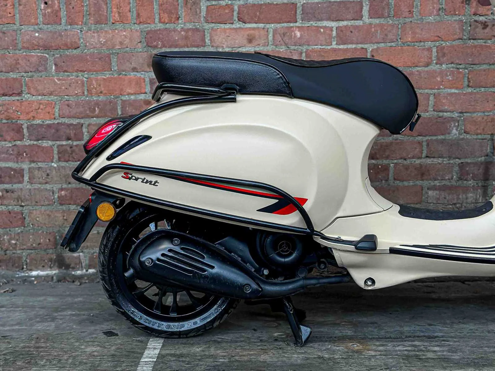 Merk: Vespa Model: Snorscooter Type: Sprint 4T Piaggio Handelsbenaming: VESPA SPRINT Kenteken: DDN-53-B Datum eerste toelating: 2015-09-08 Transmissie: Automaat Brandstof: Benzine Kleur: Desert Storm Afgelezen kilometerstand: 15688km