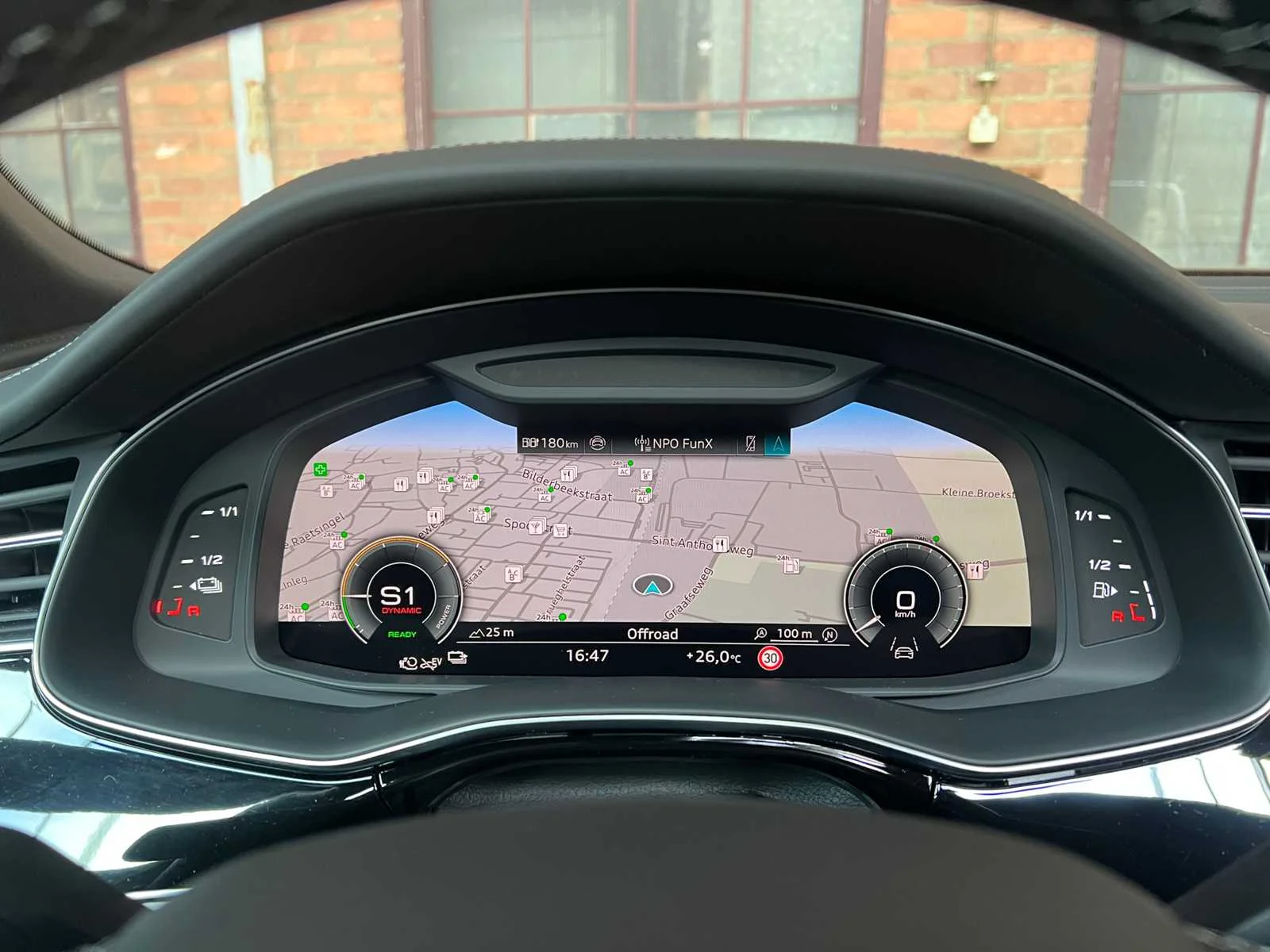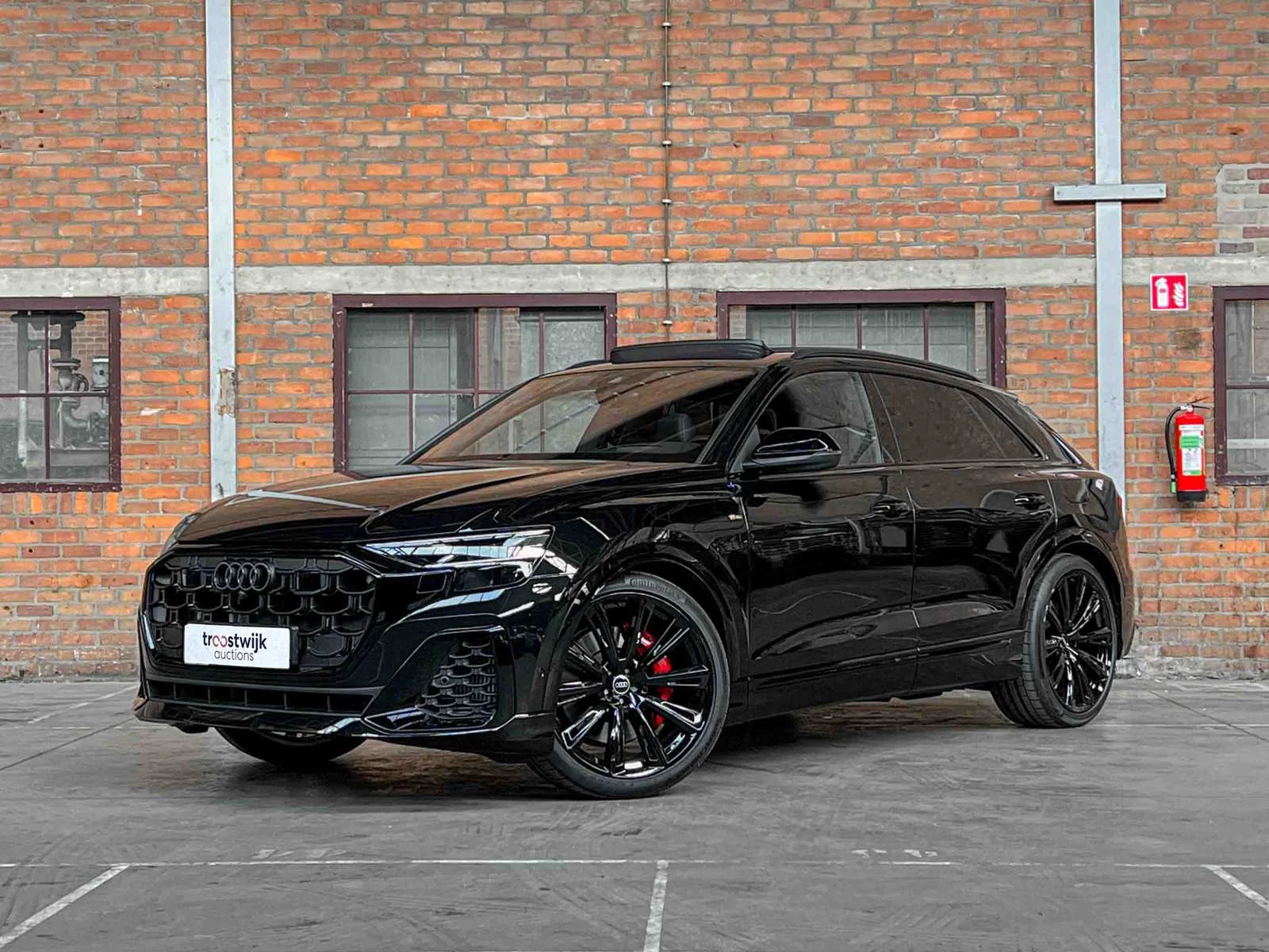 Merk: Audi Model: Q8 Type: 60 TFSIe Quattro S-Line Afgelezen kilometerstand: 1776km Cilinderinhoud: 2995cc Brandstof: Hybride (benzine / elektriciteit) Chassisnummer: WAUZZZF17SD025763 Datum eerste toelating: 2025-02-18 Vermogen (pk): 490hp Aandrijving: Vierwielaandrijving Aantal zitplaatsen: 5 Kleur: Mythos Zwart Metallic Transmissie: Automaat Stuurwiel: Links gestuurd Aantal deuren: 5 Carrosserie: SUV Nationaliteit documenten: Oostenrijkse kentekendocumenten Onderhoudshistorie: Ja volledig