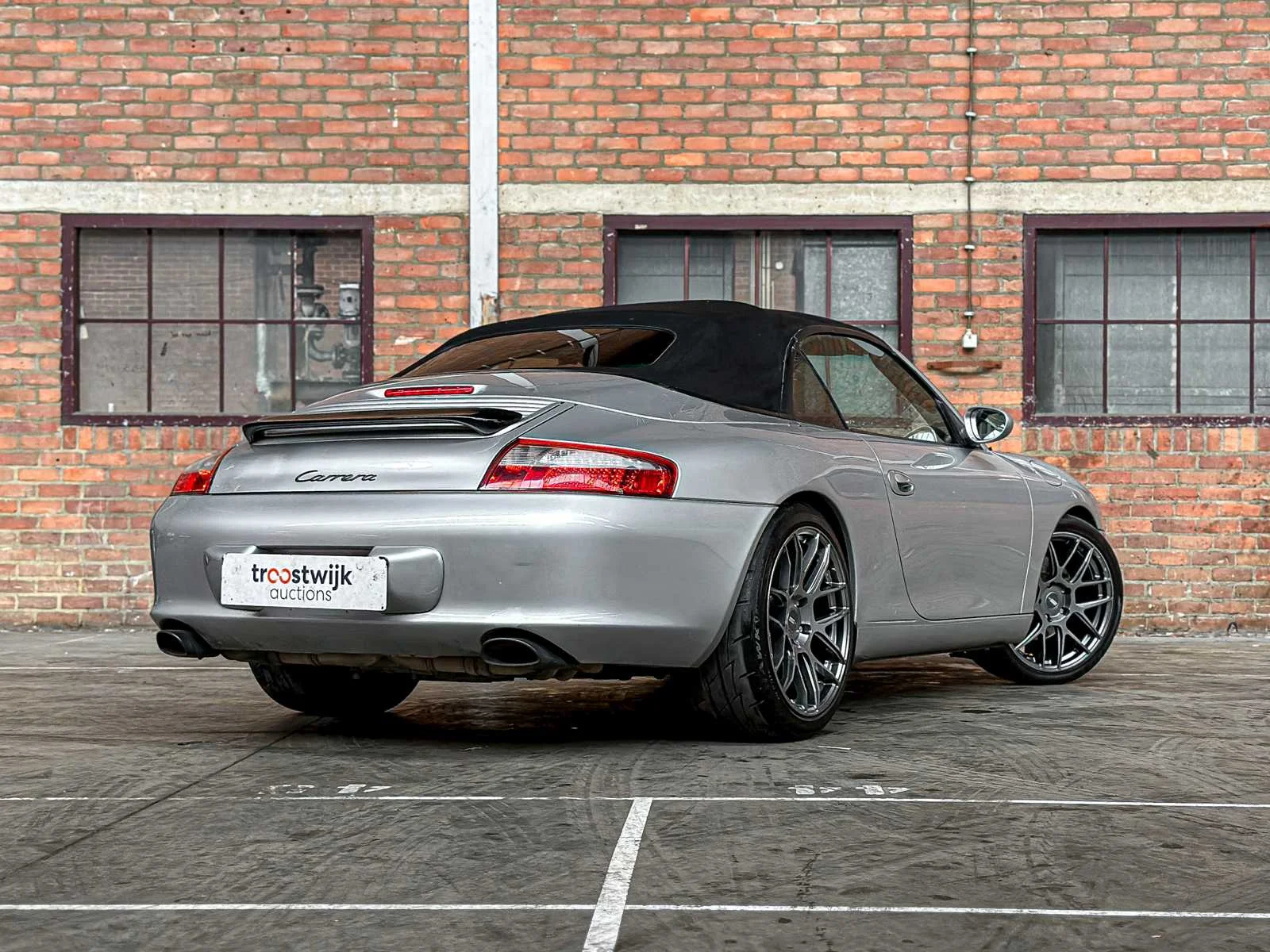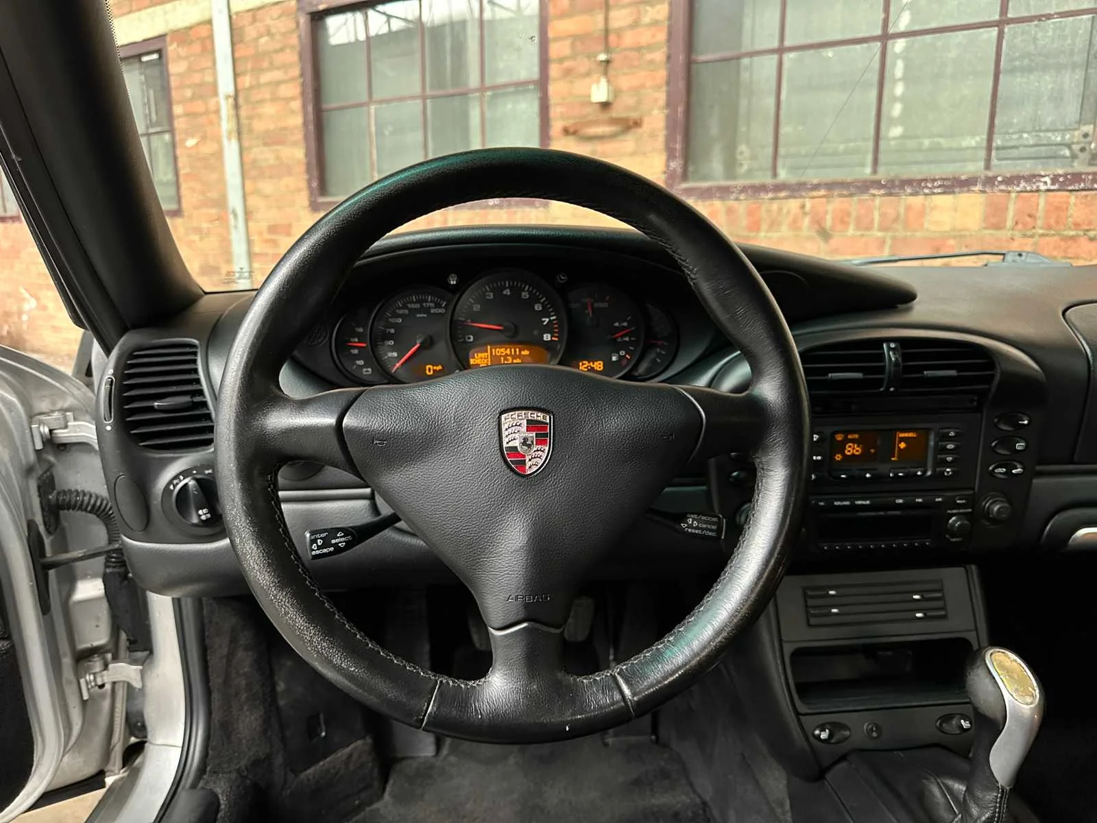 Merk: Porsche Model: 911 Type: Cabriolet Carrera 3.6 996 Facelift Brandstof: benzine Afgelezen mijlenstand: 105415mi Chassisnummer: WP0CA299X3S650406 Datum eerste toelating: 26-6-2003 Vermogen (pk): 320hp Aandrijving: Achterwielaandrijving Kleur: zilver Transmissie: Handgeschakeld Stuurwiel: Links gestuurd Carrosserie: Cabriolet Nationaliteit documenten: USA (salvage) title, invoerrechten en BTW zijn voldaan