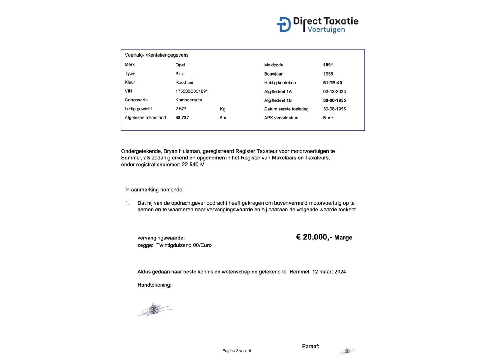 Kenteken: 61-TB-40 Merk: Opel Model: Blitz 1.75 T BE Type: Bolkop 2,5 L55-09590L Chassisnummer: 175330C031891 Handelsbenaming: BLITZ 1.75 T BE Transmissie: Handgeschakeld Datum eerste toelating (NL): 1980-05-09 Datum eerste toelating: 1955-06-30 Afgelezen mijlenstand: 58747mi NAP status: Geen oordeel Vermogen (kW): 46kW Vermogen (pk): 63hp Cilinderinhoud: 0cc Emissieklasse: 0 Brandstof: Benzine / Gas LPG Kleur: niet van toepassing Carrosserie: kampeerwagen Ledig gewicht: 2572