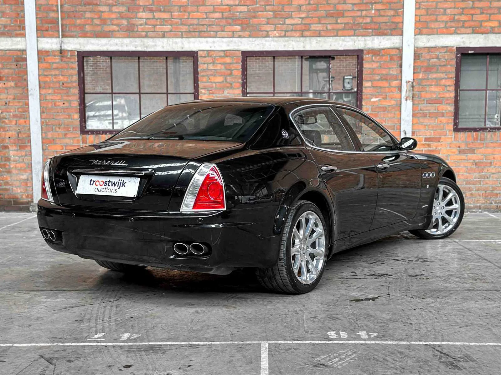 Merk: Maserati Model: Quattroporte Type: 4.2 V8 Afgelezen kilometerstand: 41000km Brandstof: Benzine Chassisnummer: ZAMCD39J000020810 Datum eerste toelating: 2005-01-01 Vermogen (pk): 400hp Aandrijving: Achterwielaandrijving Kleur: Zwart Transmissie: Automaat Stuurwiel: Links Carrosserie: Sedan Nationaliteit documenten: Japanse documenten, invoerrechten en BTW zijn voldaan Onderhoudshistorie: Ja, gedeeltelijk