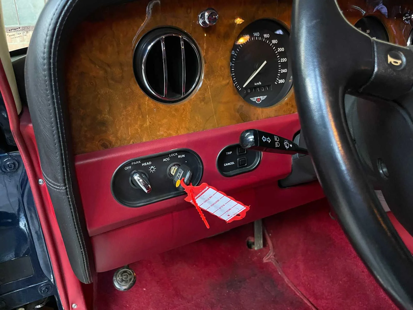 Merk: Bentley Model: Brooklands Type: 6.75 V8 Afgelezen kilometerstand: 68000km Brandstof: Benzine Chassisnummer: SCBZE12C1TCX57341 Datum eerste toelating: 1996-01-01 Vermogen (pk): 245hp Aandrijving: Achterwielaandrijving Aantal zitplaatsen: 5 Kleur: Blauw Transmissie: Automaat Stuurwiel: Links Carrosserie: Sedan Nationaliteit documenten: Japanse documenten, invoerrechten en BTW zijn voldaan Onderhoudshistorie: Nee
