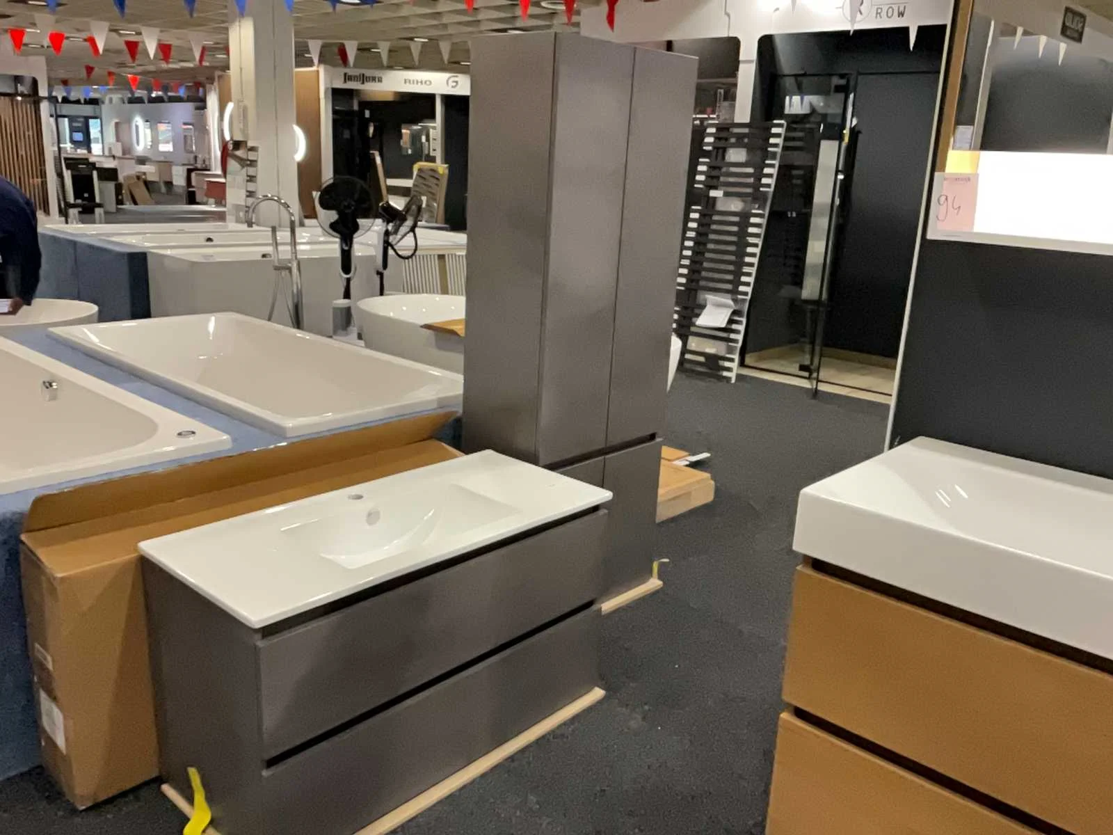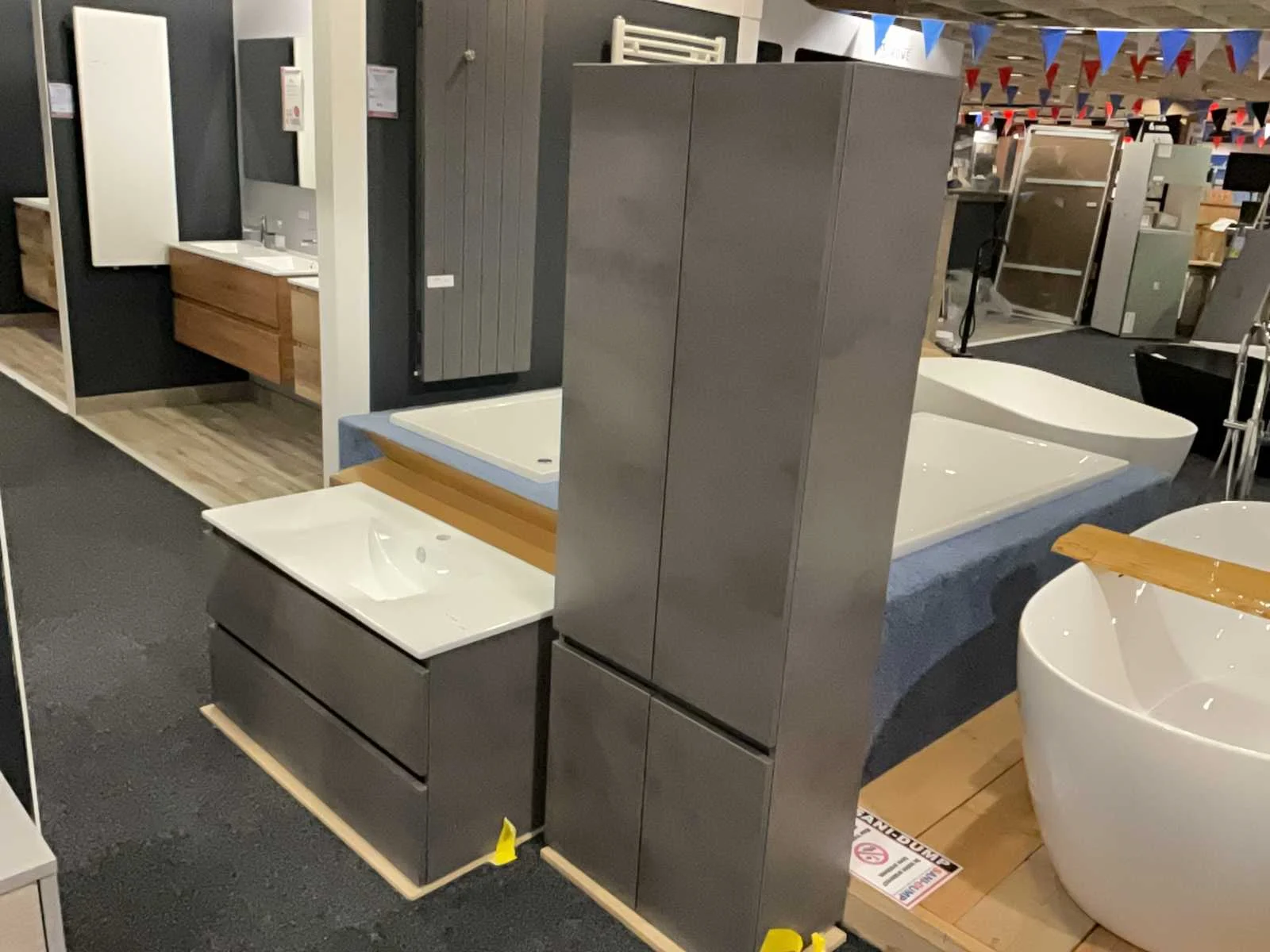 Bestaande uit wastafel meubel en wandkast 60x33x168 Model: Bme Hoogte: 57cm Lengte: 101cm Breedte: 46cm Wastafel: 1 Onderkast: 1 Lades: 2 Softclose: true Zijkast: 1