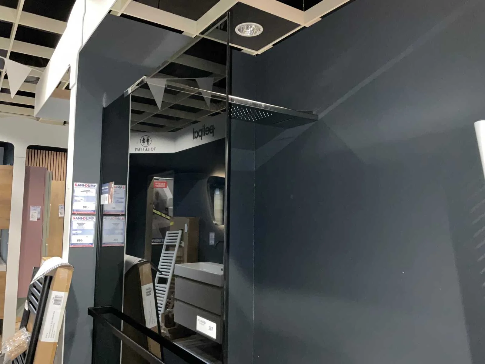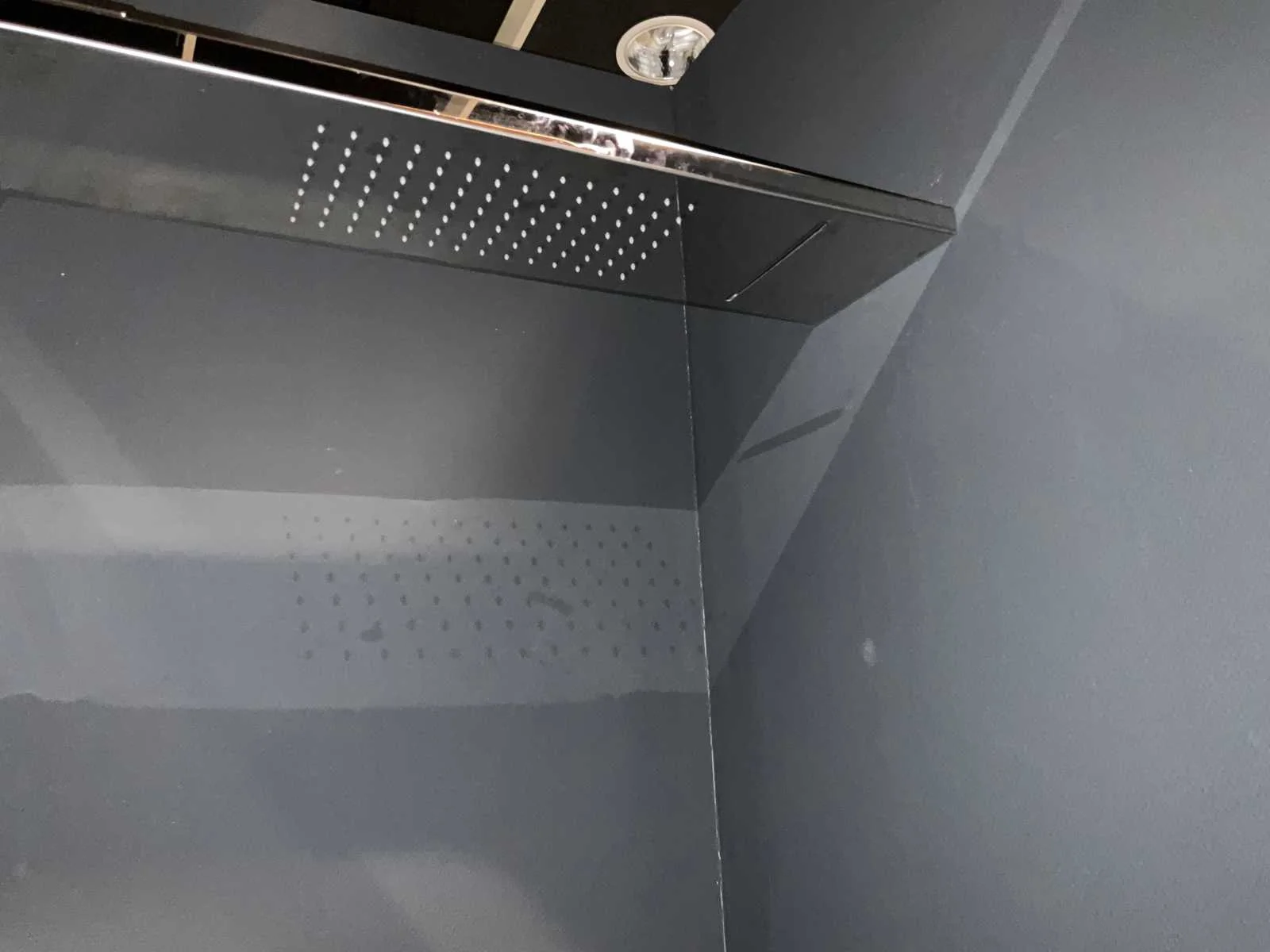 Douchewand alsmede regentraverse met waterval Dit betreft enkel de opbouw zonder binnenwerk Merk: HSK Model: Wald in pro, lavida plus Lengte: 120cm Hoogte: 200cm