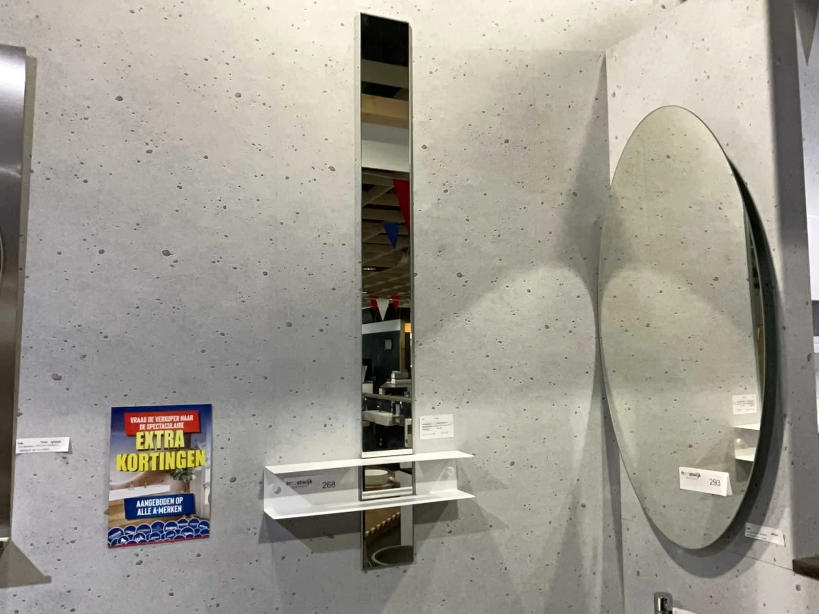 Spiegel afm ca. 10x70 cm met planchet Merk: Ink Model: Linea Lengte: 36cm Hoogte: 72cm