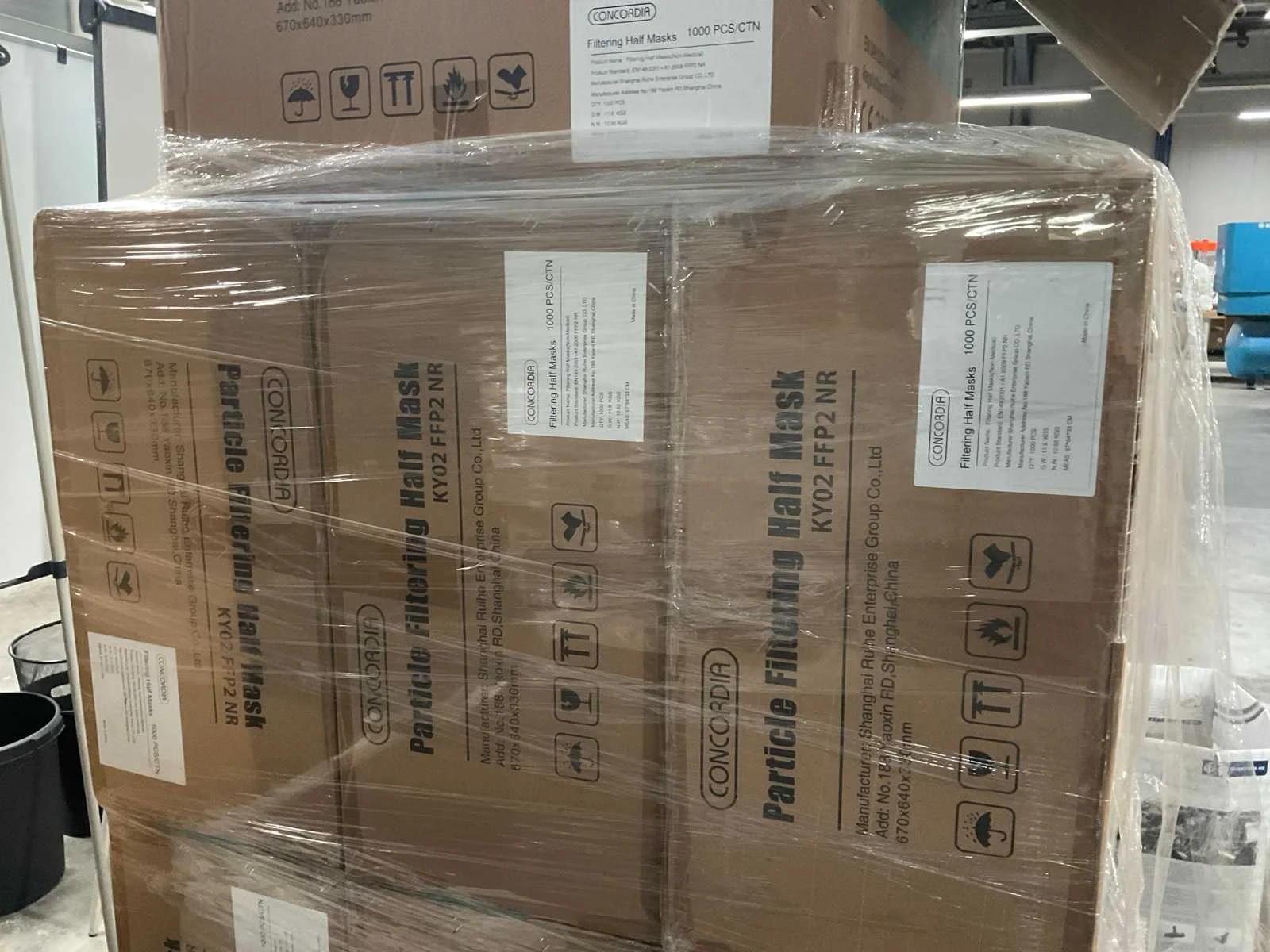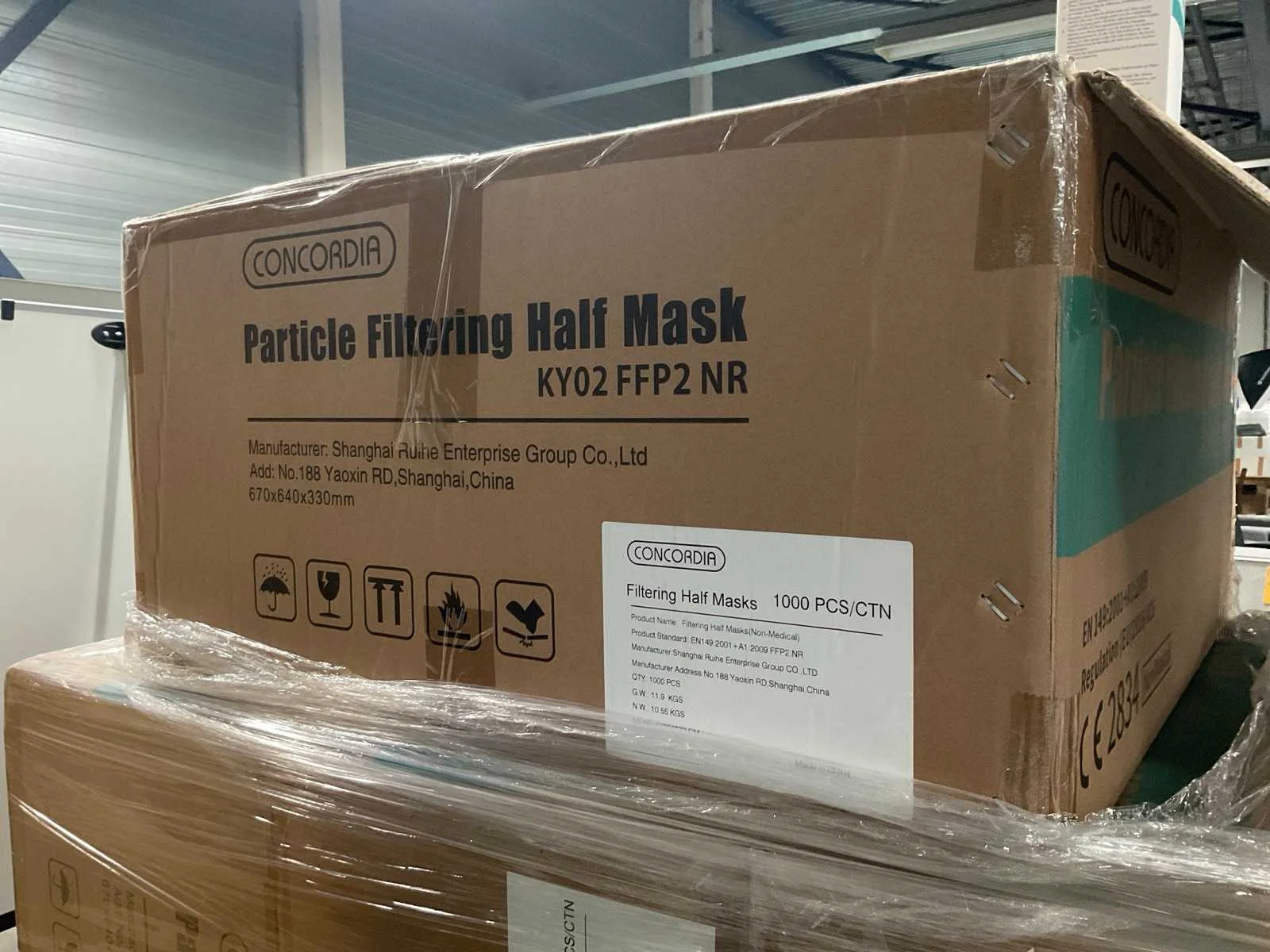 Bestaande uit 7 dozen KY02 FFP2 NR mondkapjes. Circa 7000 stuks. Exclusief pallet