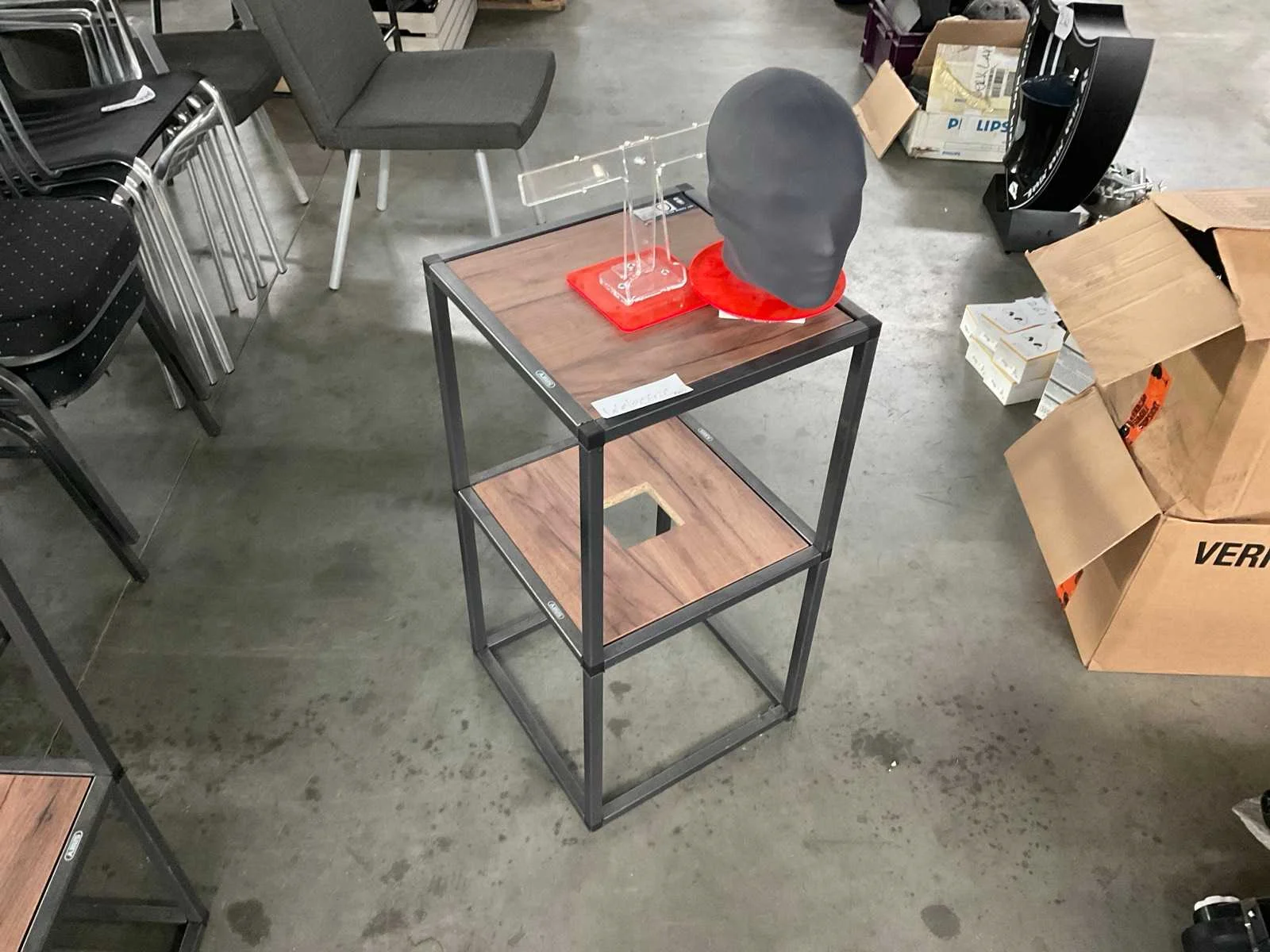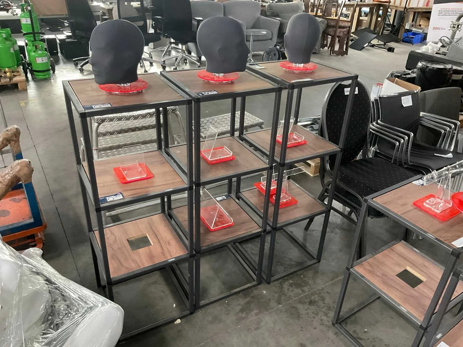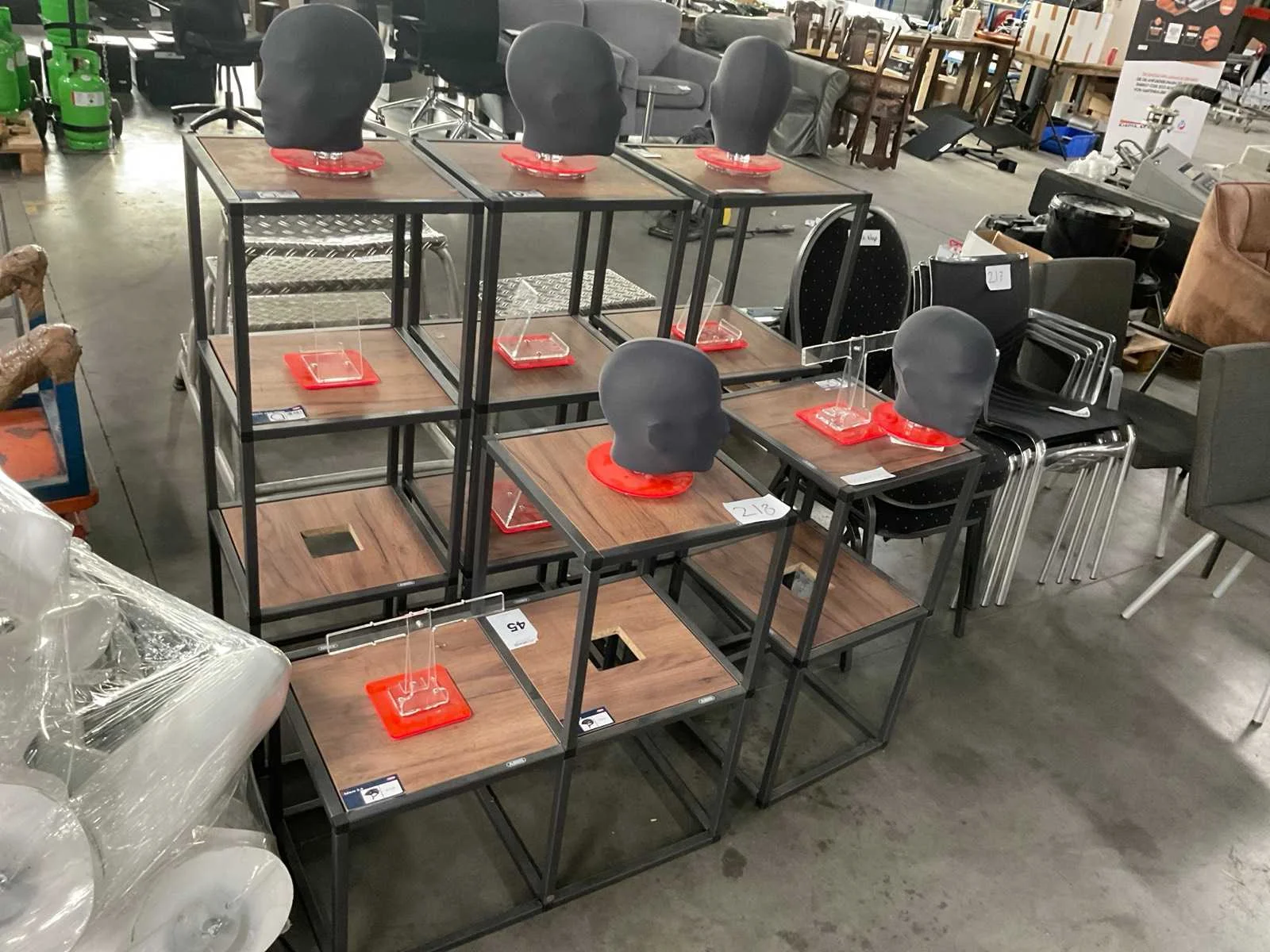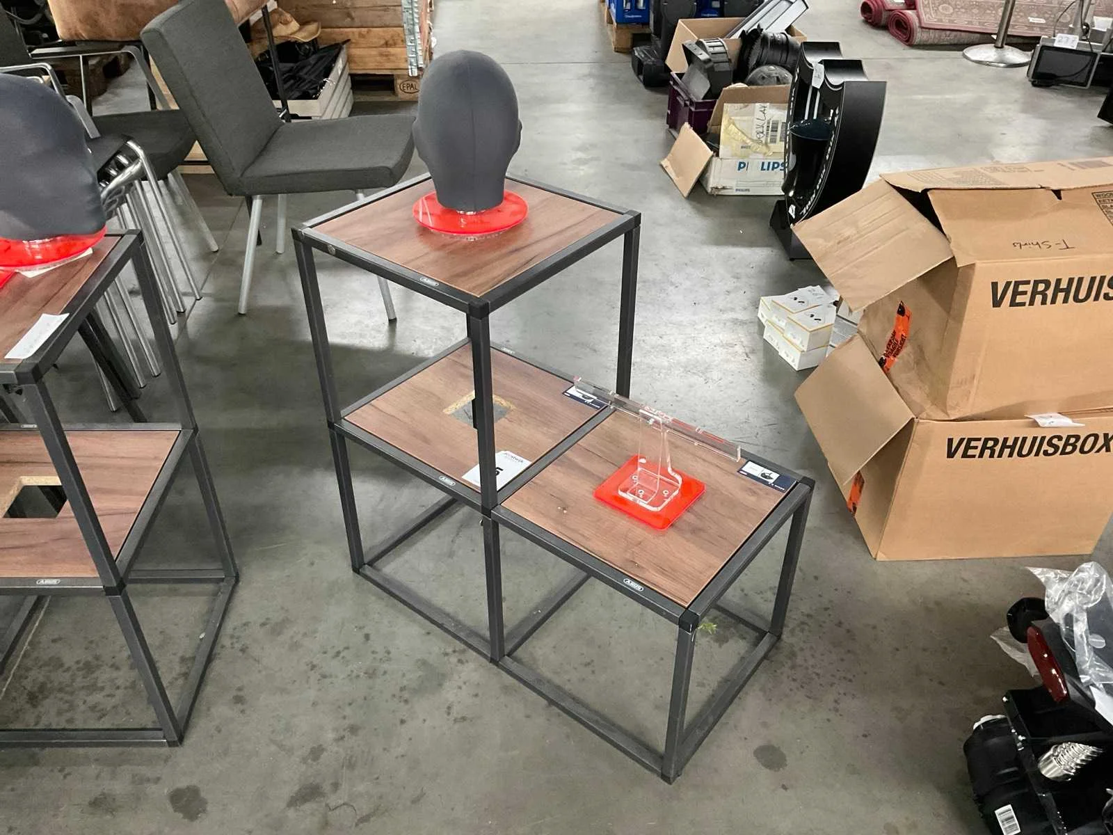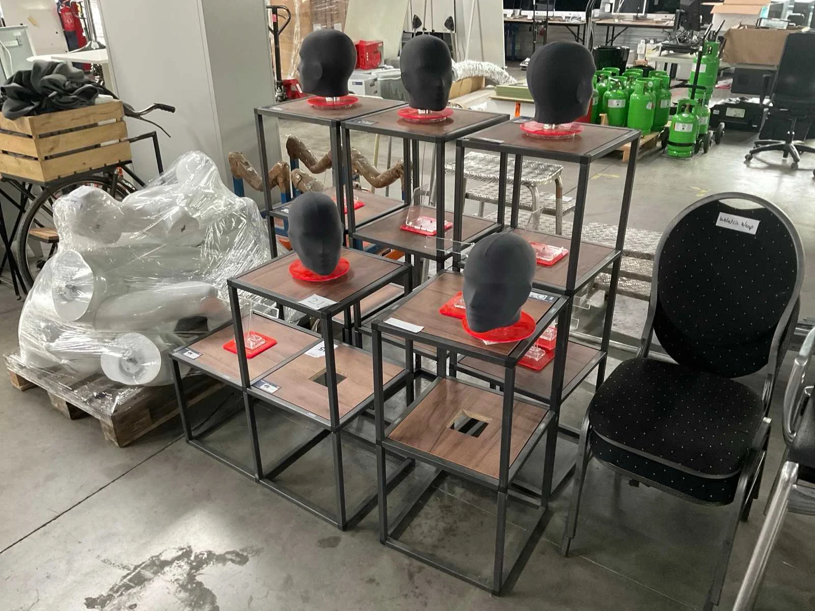 Bestaande uit 3rekken van 3 hoog, 1 rek van 2 hoog en 1 rek 2 hoog bij 2 breed in L vorm. Inclusief paspophoofden
