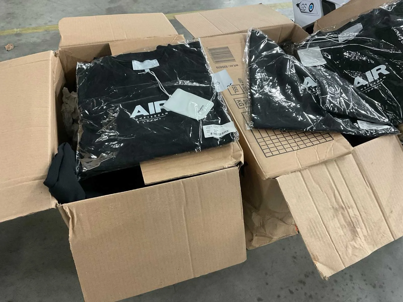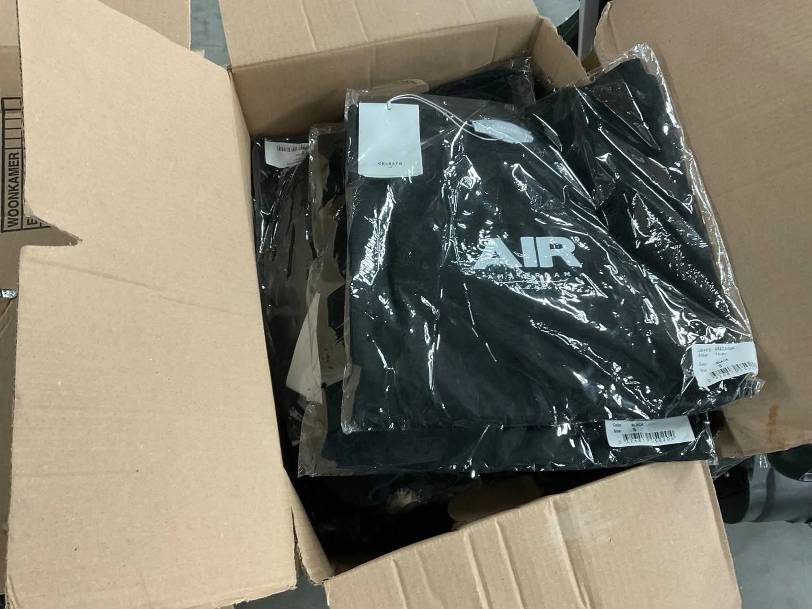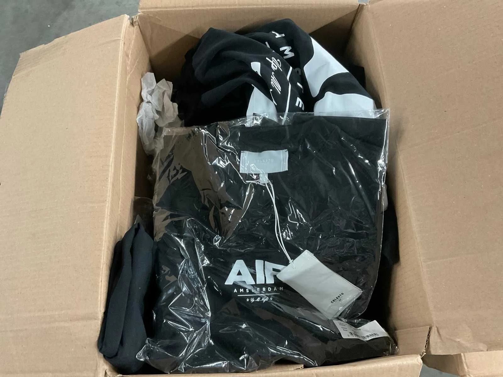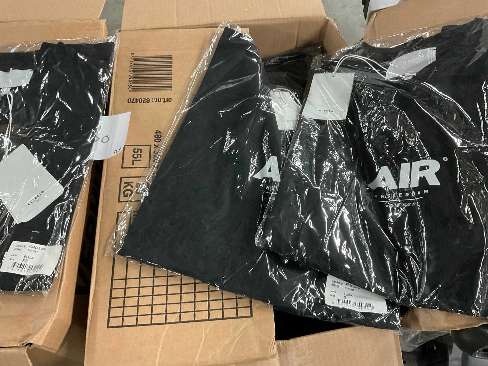 Bestaande uit zwarte t-shirts met opdruk, in verschillende maten. Merk: Celesto