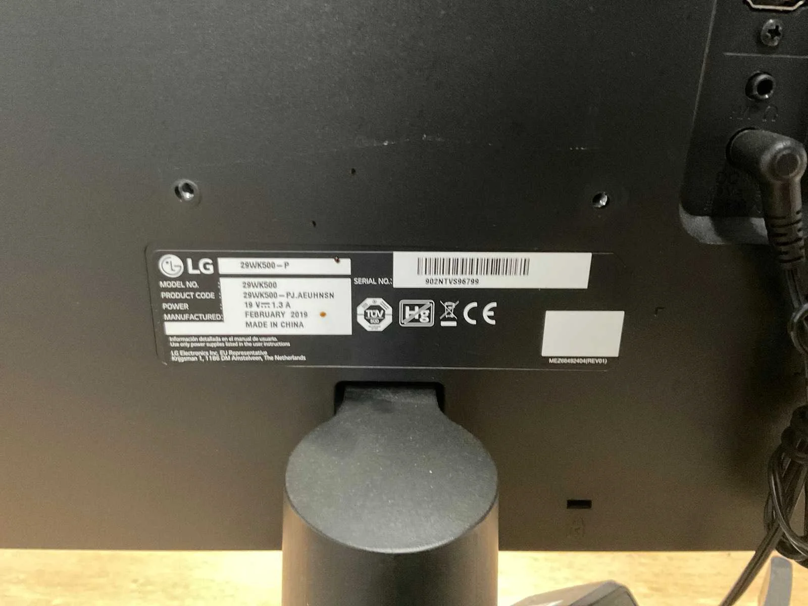 Inclusief voedingskabel Merk: LG Model: 29WK500