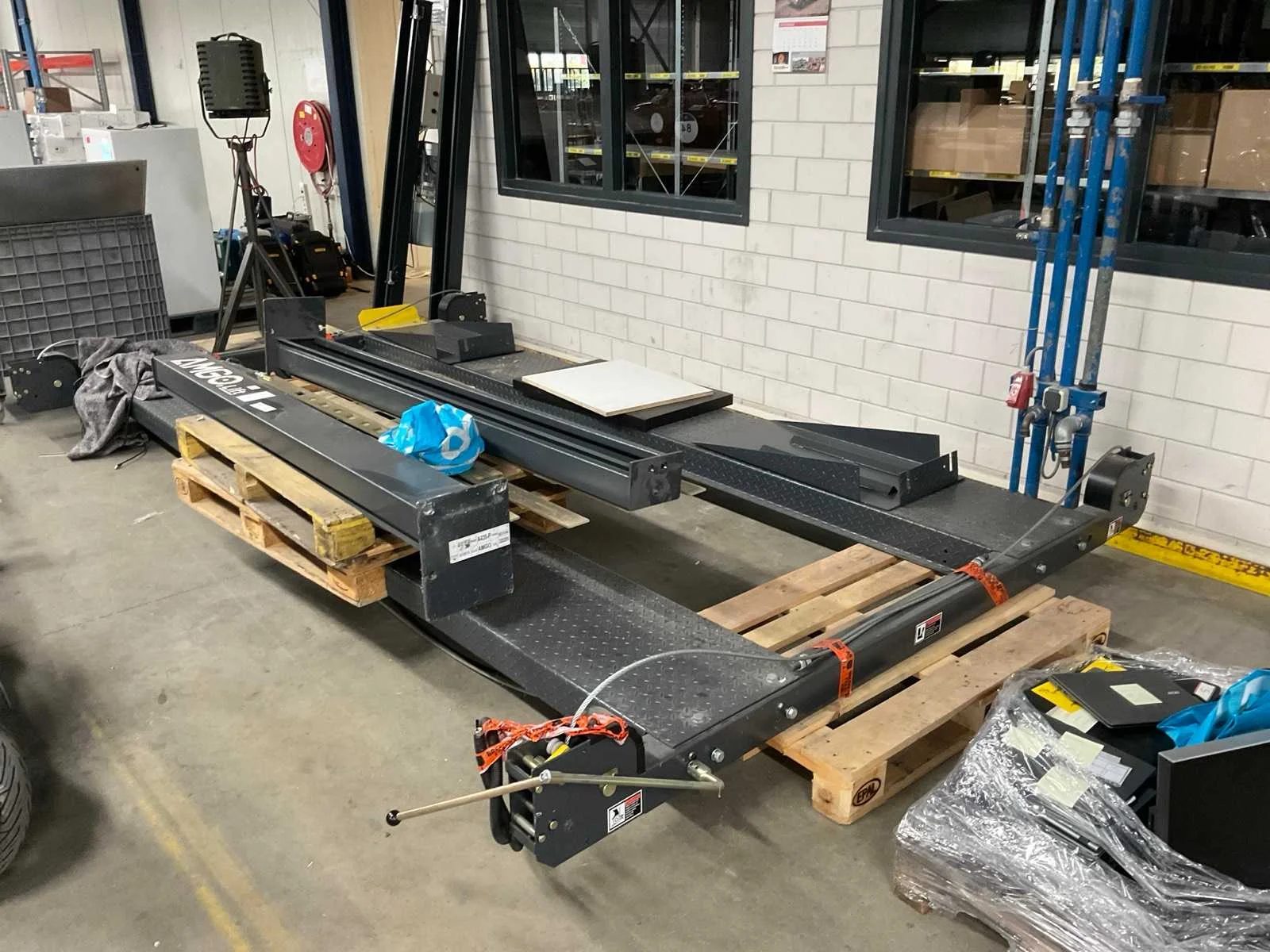 Aantal: 1. Merk: AMGO Lift. Product: Hefbrug. Type: A-435P. Model: 4-koloms. Lengte: ca. 430 cm. Breedte: ca. 270 cm. Hoogte: ca. 210 cm. Kleur: Grijs. Bouwjaar: 2019. Opmerking: Brug is gedemonteerd en ligt op pallets, exclusief pallets. Merk: AMGO Lift A-435P 4-Koloms Hefbrug