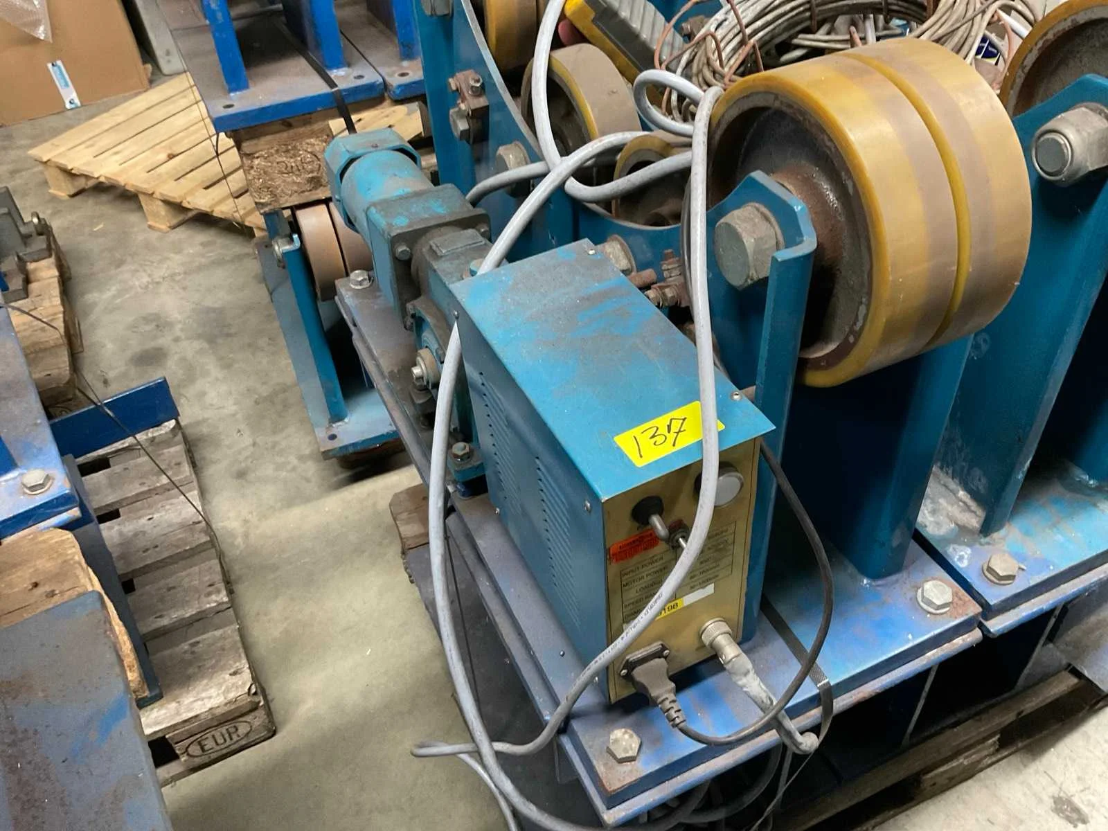 Rolbank voor pijplassen, voorzien van motor