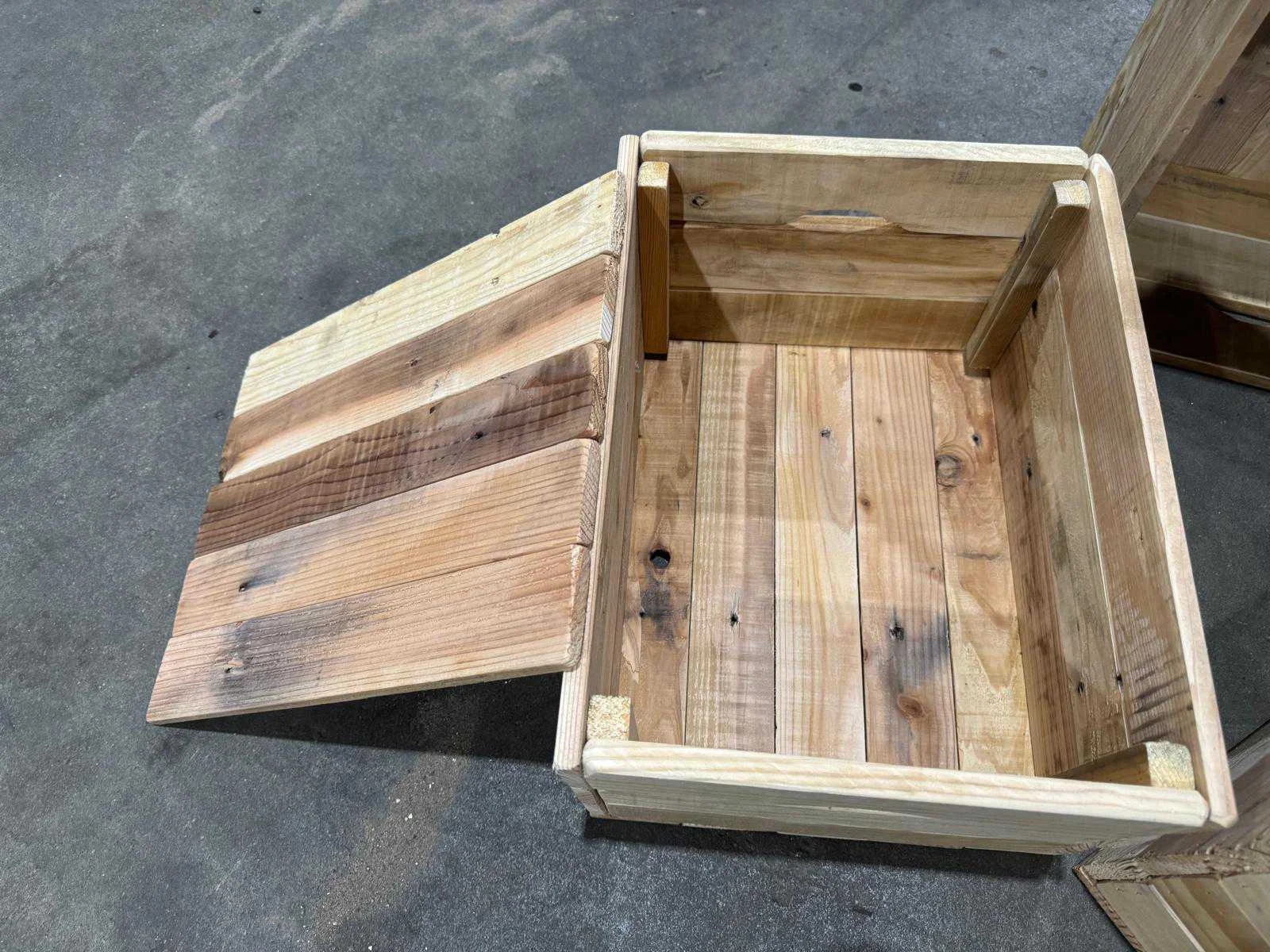 Kist is gemaakt van gebruikt hout, inclusief deksel Lengte: 400mm Breedte: 320mm Hoogte: 230mm Materiaal: Hout