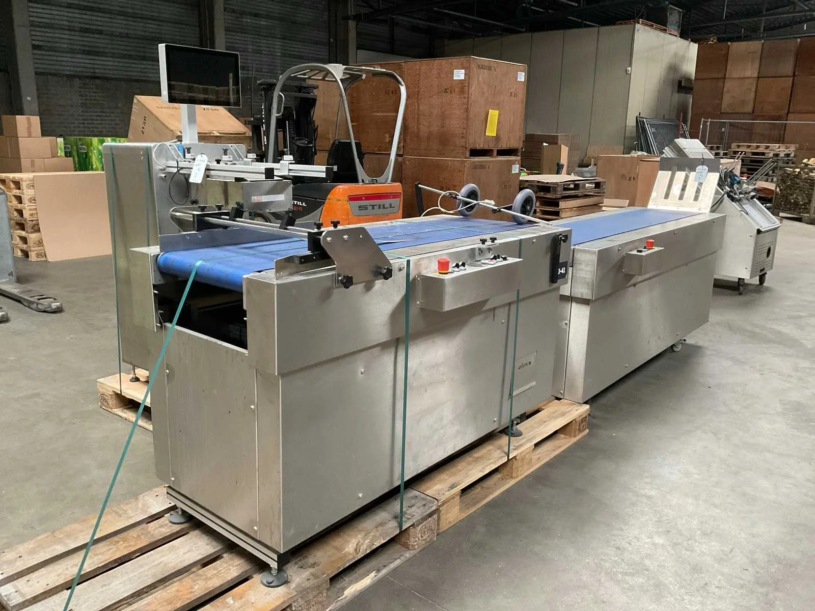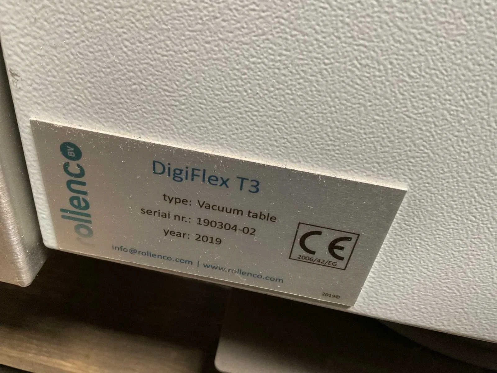 Uitvoering: vlakdoorvoer printer met verstelbare digitale printkop, Tellerstand: 295.135 km bedrukt totaal, 52.905m2 bedrukt oppervlakte, Besturing: touchscreen/hand, printkop TEN00282, Cap/max: doorvoer 297mm, 1200x1200 dpi, 27m/min. CYMK. Betreft aangepaste /verbeterde Trojan T3-OP overprinter. Referentienr: 3116457125 Voorzien van CE-Keur Voeder A: Rollenco, Digiflex T3 Voeder 2, bj 2019, s/n 190304-06 Voeder B: Rollenco, P&D Feeder PD10001, bj 2019, s/n 190304-09 Besturing: Siemens Simatic HMi touchscreen Voorzien van Rollenco uitvoertafel circa 2.5mtr, vacuümdoorvoerband. Merk: Rollenco Type: Digiflex T3 Bouwjaar: 2019 Serienummer: 190304-01 / T3000309 Digitale besturing: true Aansluiting: 400V Totale afmeting L: 4600mm Totale afmeting Breedte: 1100mm Totale afmeting Hoogte: 1750mm