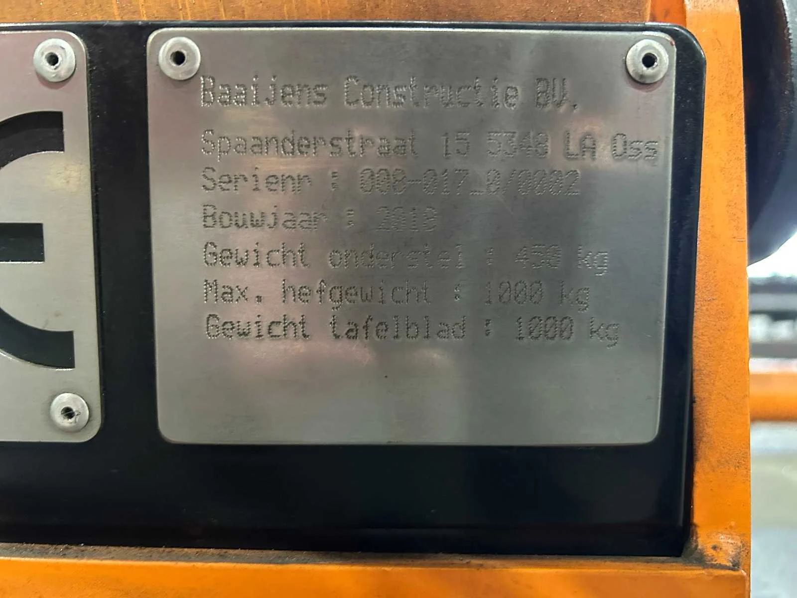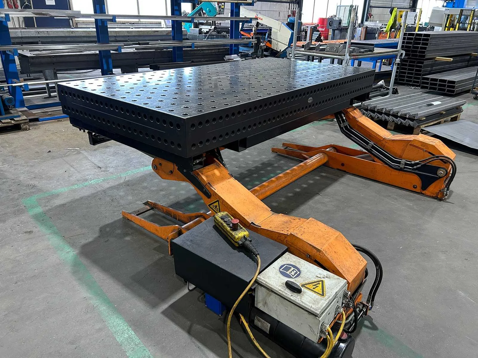 Siegmund Lastafel met hefinrichting. Hoogte instelbaar tot 1480mm. Afmeting lastafel 2400x1200x200mm. Bediening aan snoer. Documentatie is aanwezig. Geen hulpstukken. Merk: Siegmund Type: Instelbaar Bouwjaar: 2018 Gewicht: 1450 Serienummer: 008-017_0/0002 Lengte: 2600cm Breedte: 2200cm Hoogte: 530cm