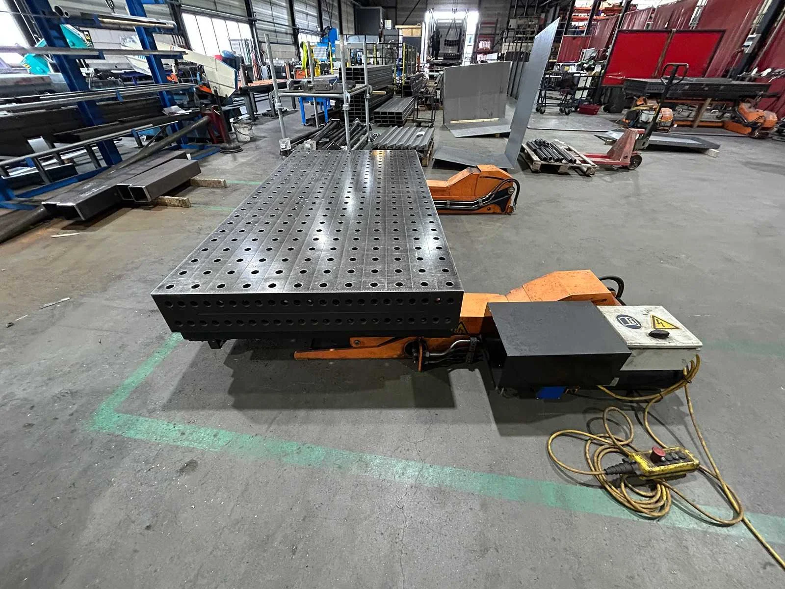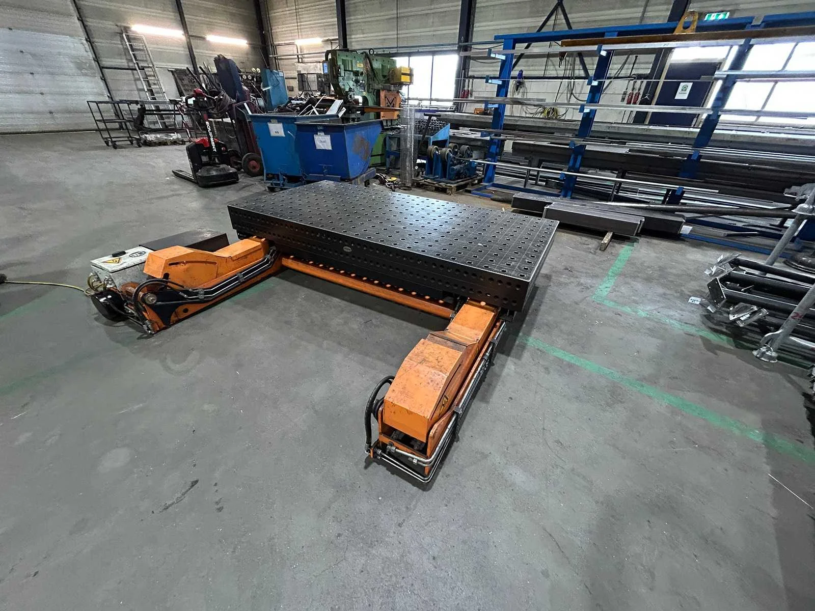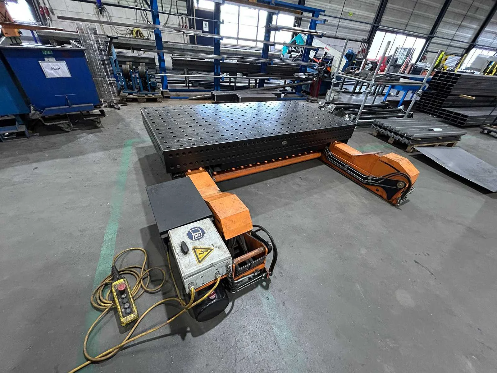Siegmund Lastafel met hefinrichting. Hoogte instelbaar tot 1480mm. Afmeting lastafel 2400x1200x200mm. Bediening aan snoer. Documentatie is aanwezig. Geen hulpstukken Merk: Siegmund Type: Instelbaar Bouwjaar: 2014 Gewicht: 1450 Lengte: 2600cm Breedte: 2200cm Hoogte: 530cm
