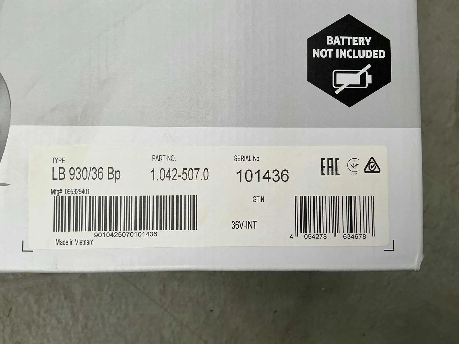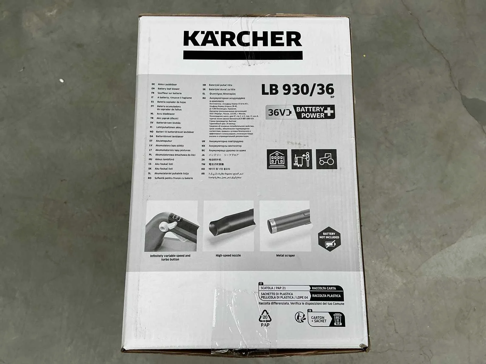 Product zit ongebruikt in de originele verpakking Merk: Kärcher Model: LB 930/36 Kleur: Grijs