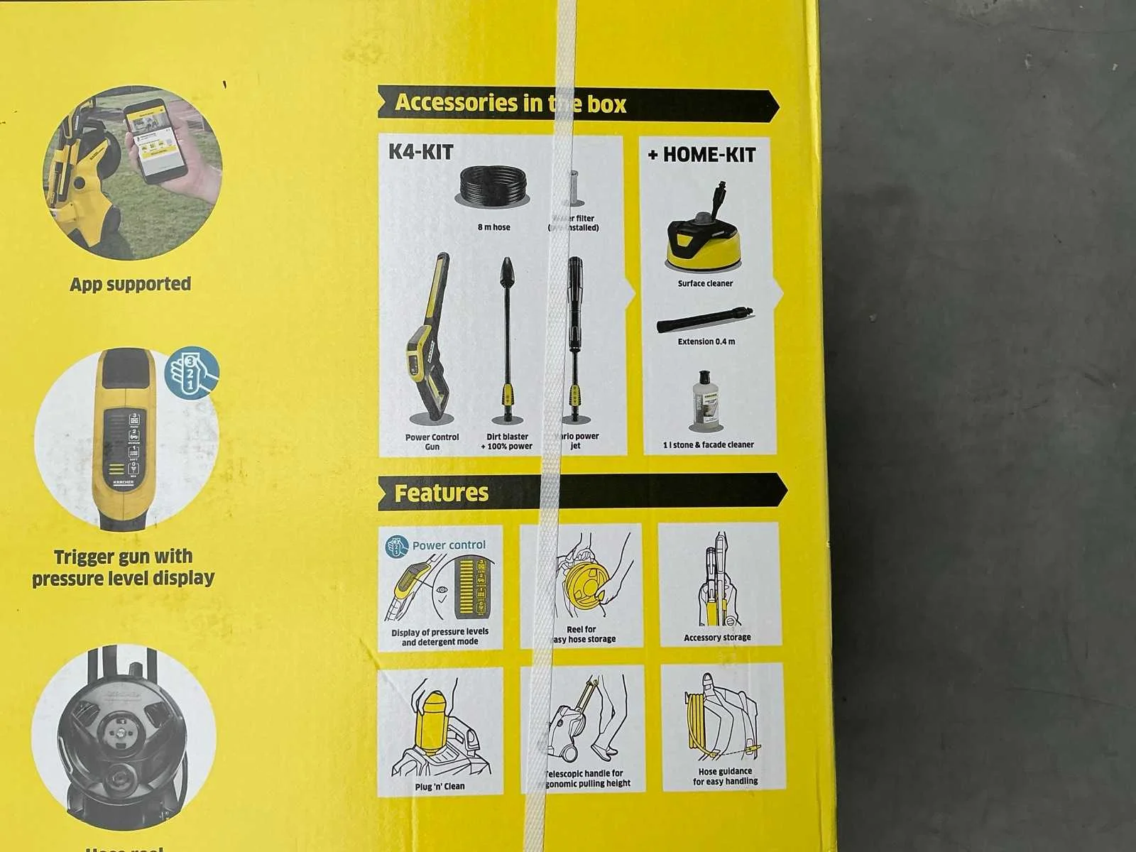 Product zit ongebruikt in de originele verpakking Merk: Kärcher Type: K4 premium power control + home kit Kleur: Geel