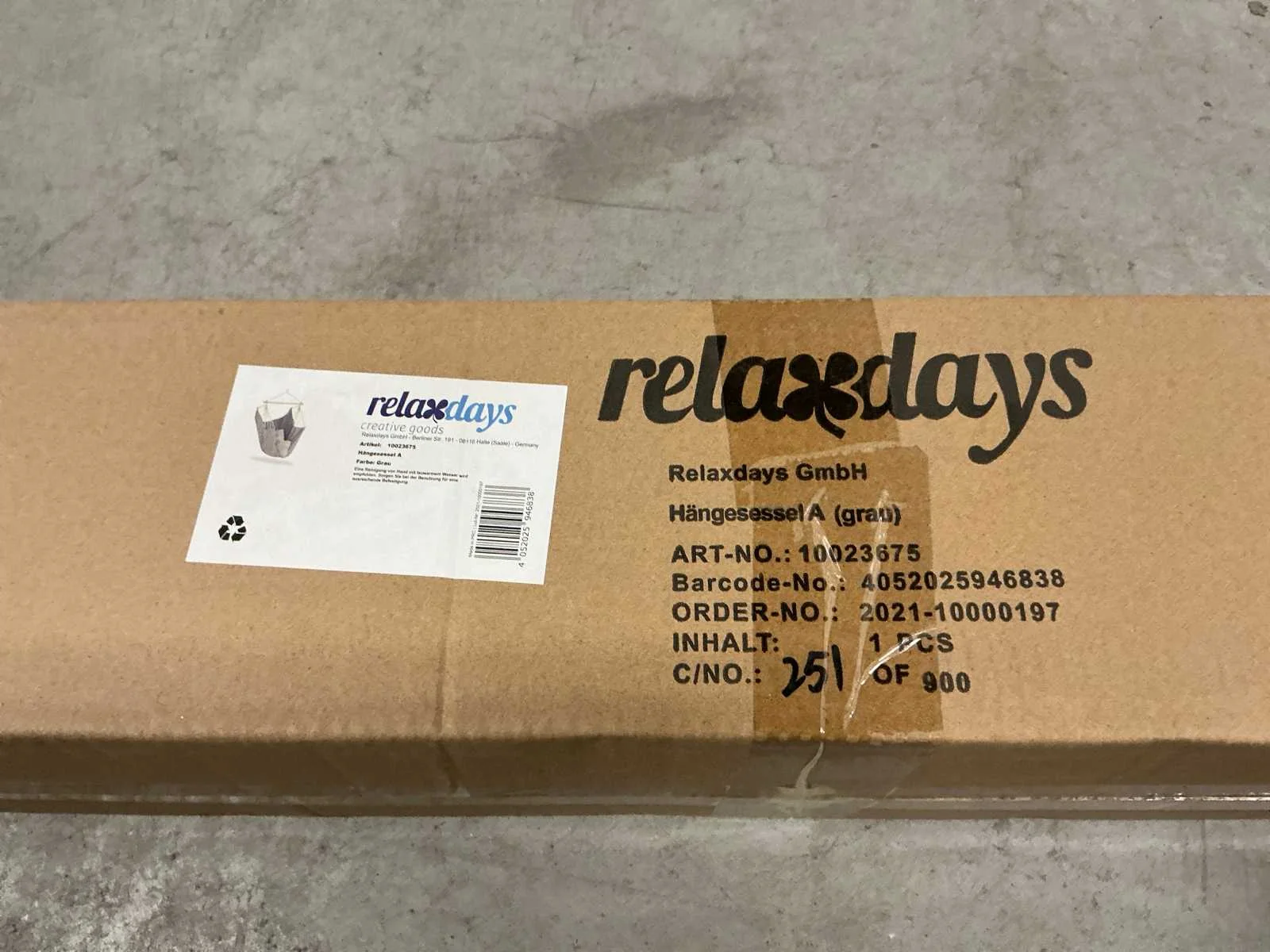 Ongebruikt in de verpakking; 1 x hangstoel; 1 x karabijnhaak; Decoratie niet inbegrepen; Tot max. 150 kg belastbaar; Ligoppervlak B x D: 165 x 130 cm Kleur: grijs