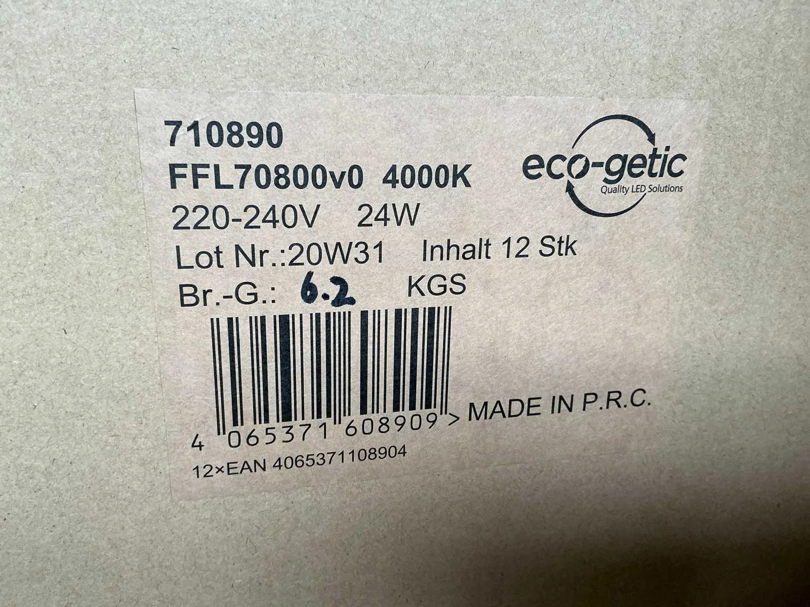 Ongebruikt in de verpakking 24w 4000k Merk: Eco getic Model: Figo Product type: 710890 Wattage: 24W