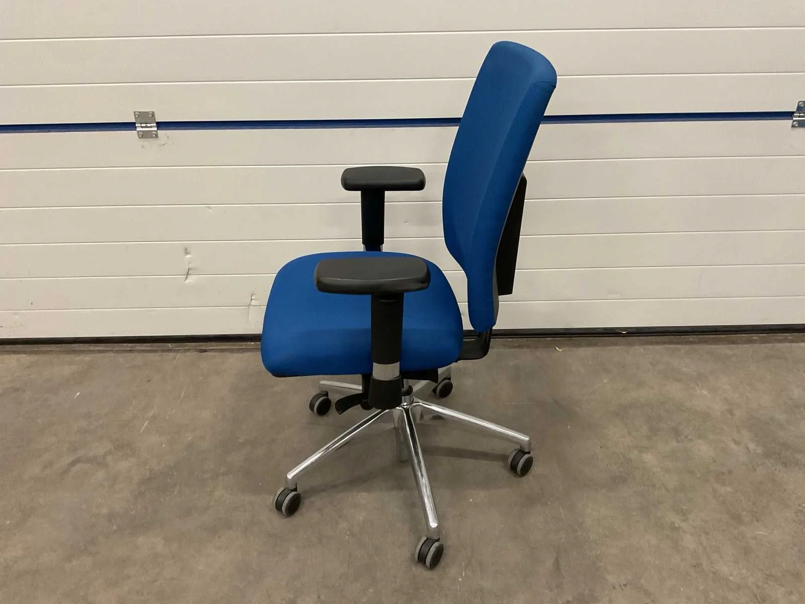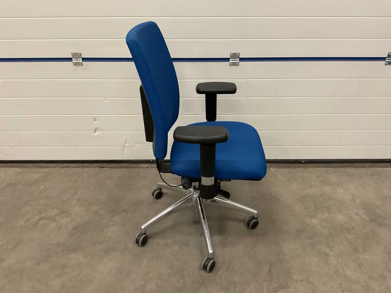 In vele standen verstelbaar. Kleur: Blauw gestoffeerd