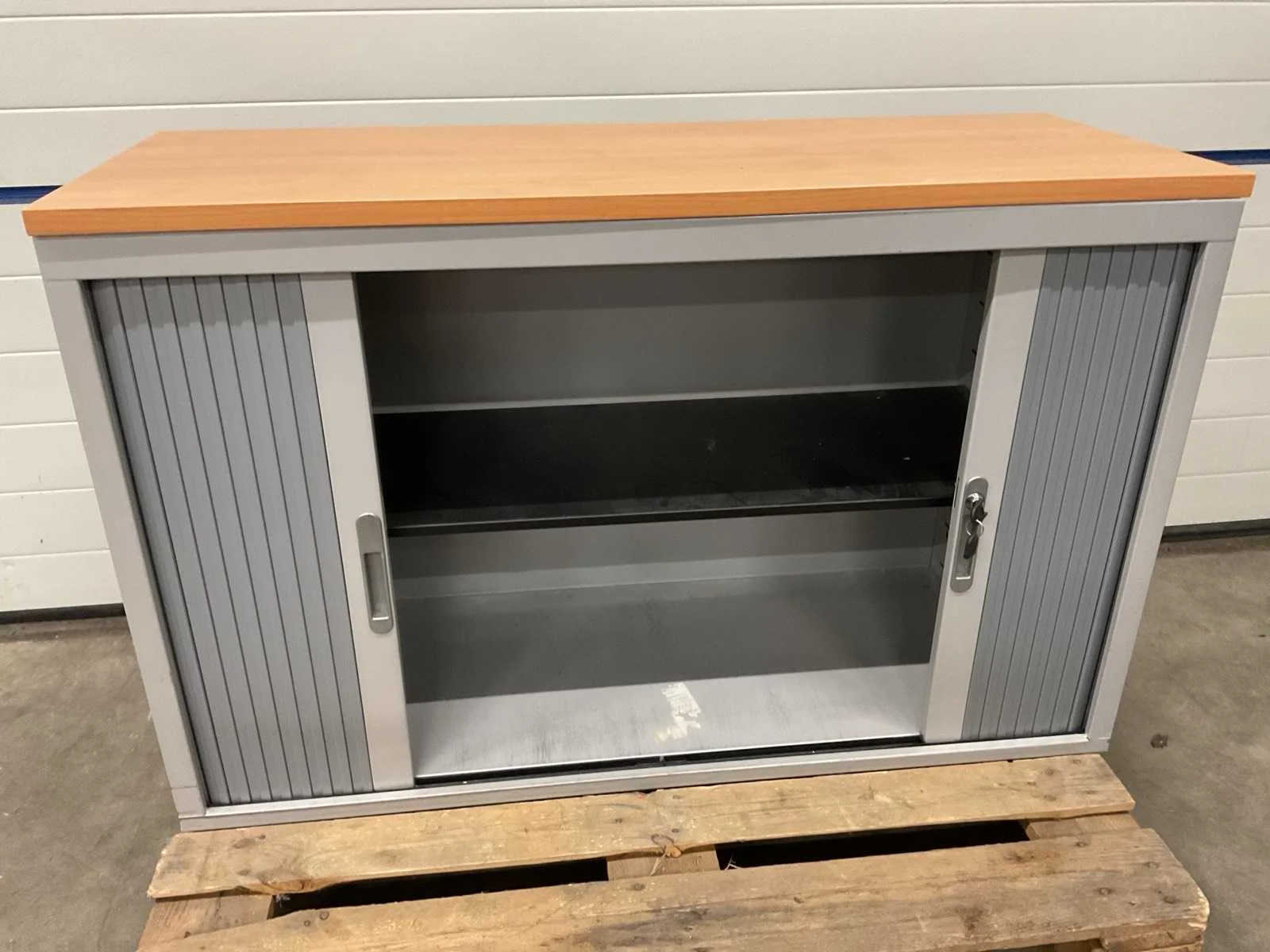 V.v. kunststof lamellen en houten topblad. Lengte: 120cm Breedte: 46cm Hoogte: 76cm Materiaal: Metaal
