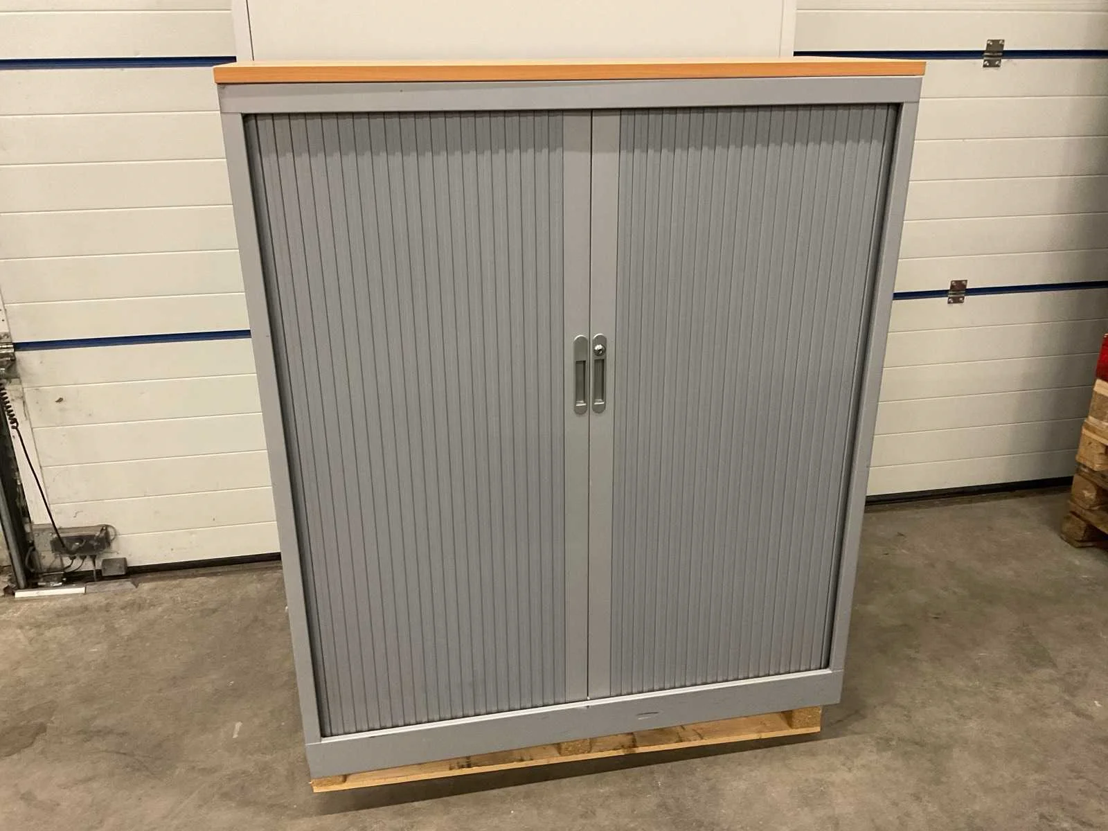 V.v. kunststof lamellen en houten topblad. Lengte: 120cm Breedte: 46cm Hoogte: 140cm Materiaal: Metaal