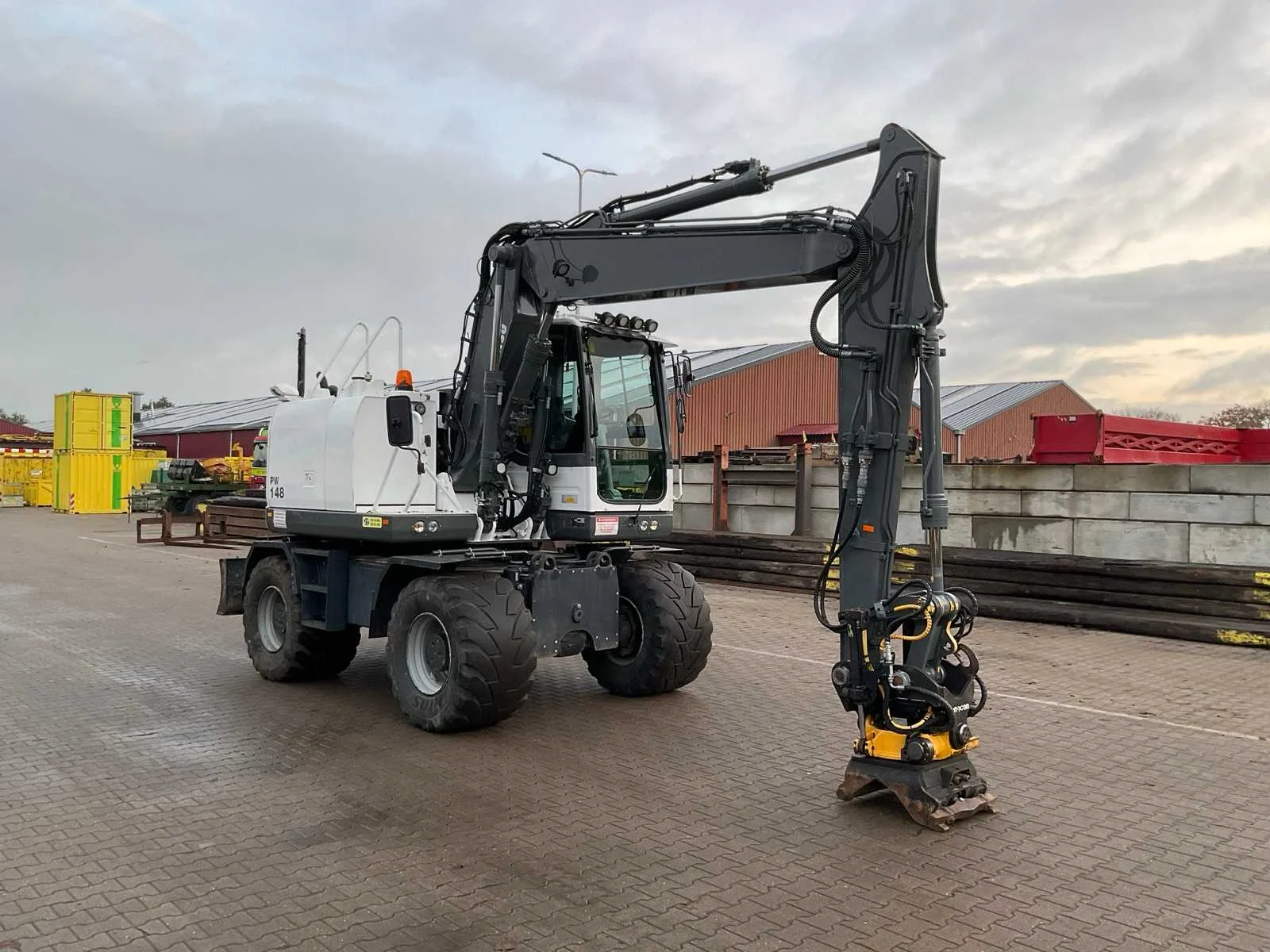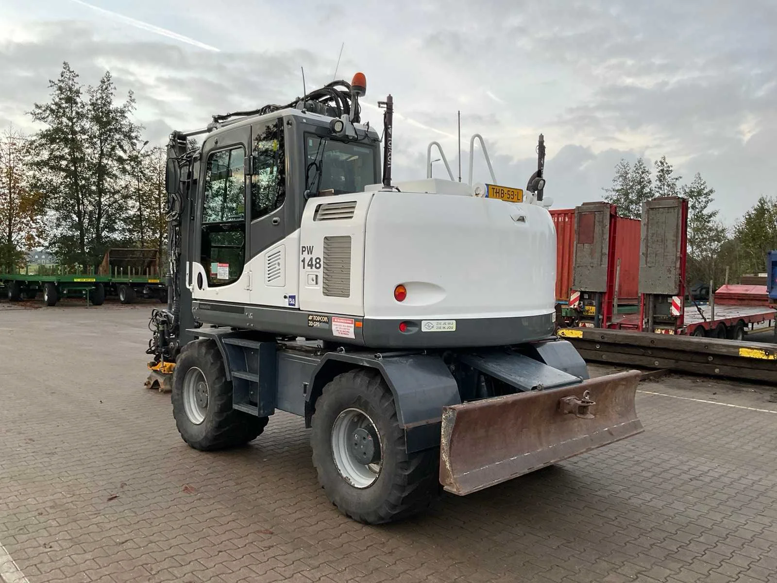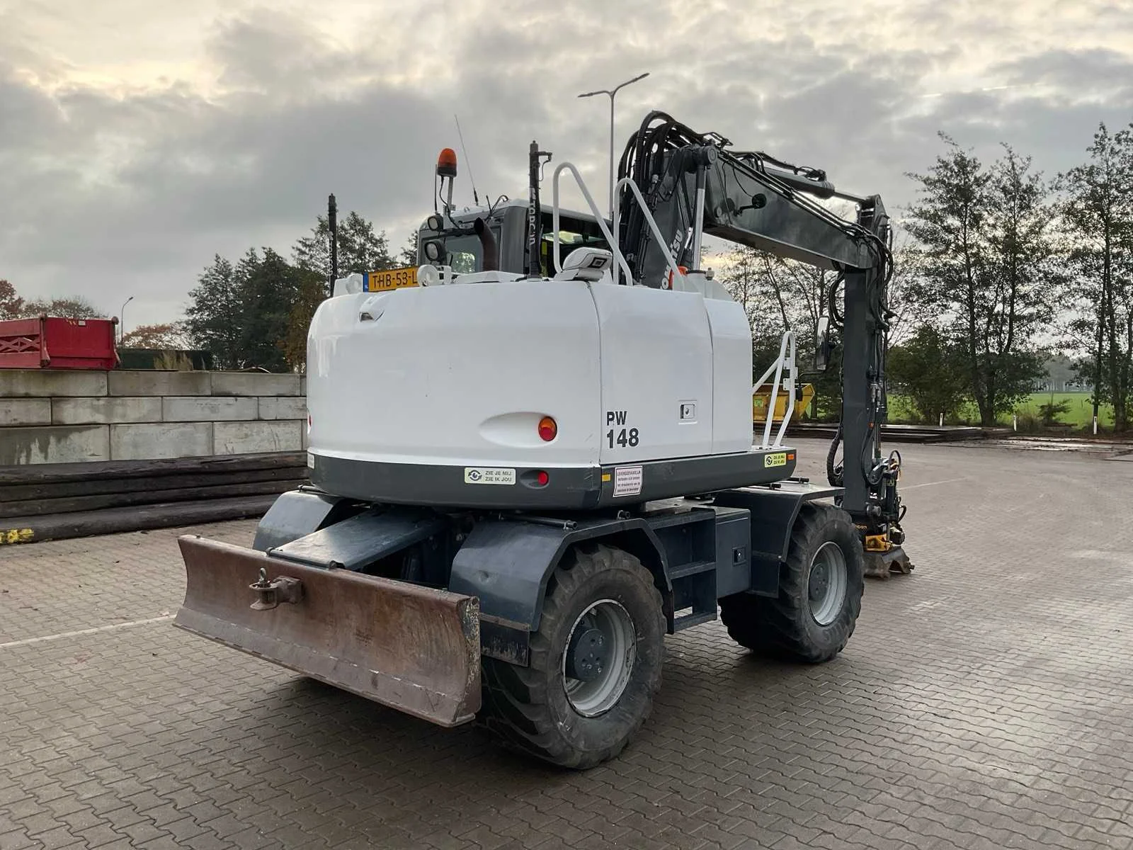 CW30 snelwissel, Encon draai-kantelstuk met hydraulische functie doorvoer, 2x dubbelwerkende hydraulische functie aan giek, stelgiek, hydraulische as afstempeling, hydraulisch schuifblad, 2x opbergkist, camera systeem, Topcon 3D GPS voorbereiding, automatische smering, airco, hi/lo schakeling, cruisecontrol, sloop/sorteerfunctie, Merk: Komatsu Type: PW148-10 Bouwjaar: 2018 Serienummer: KMTPW029CJHH52385 Kenteken: THB-53-L Merk motor: Komatsu Motorvermogen (kW): 90kW Aantal cilinders: 4 Brandstof: diesel Bedrijfsgewicht: 14519kg Gieklengte: 8000mm Bandenmaat: 600/50R22.5 Mitas Cabine: true Afgelezen urenstand: 9939 Totale afmeting L: 8000mm Totale afmeting Breedte: 2550mm Totale afmeting Hoogte: 3350mm
