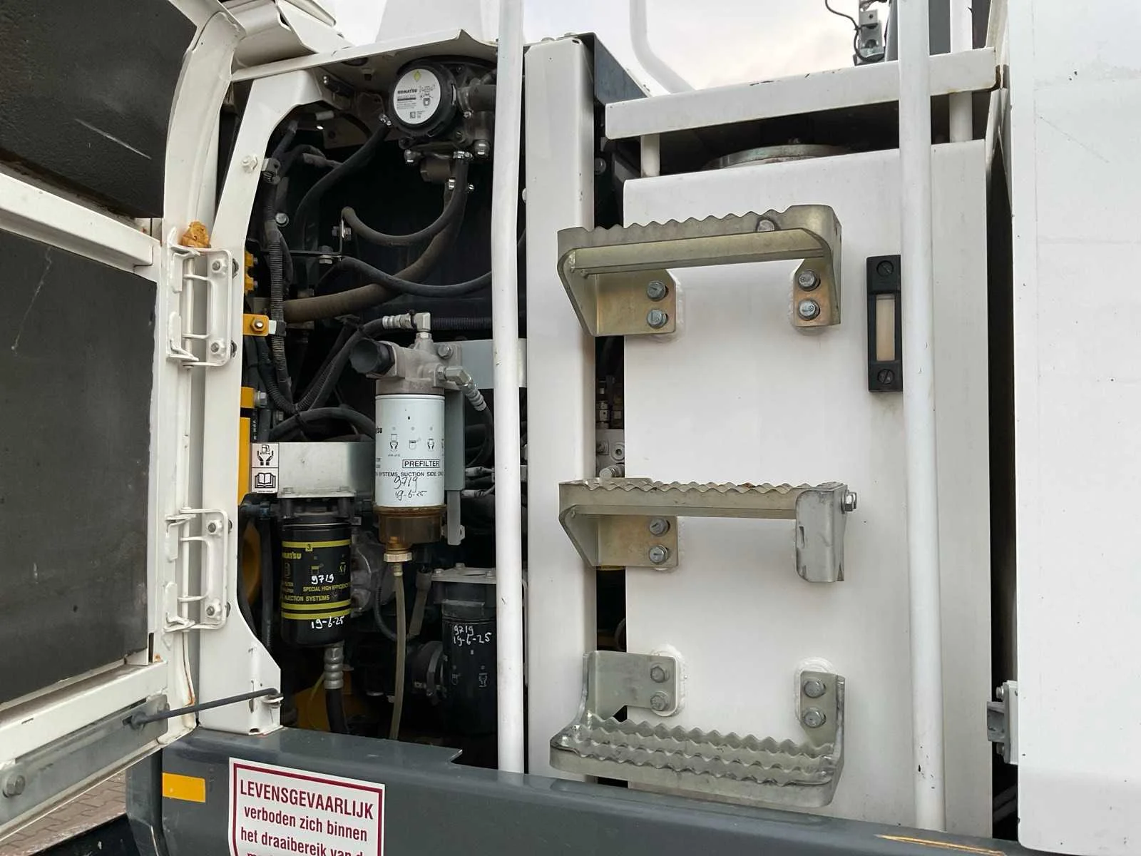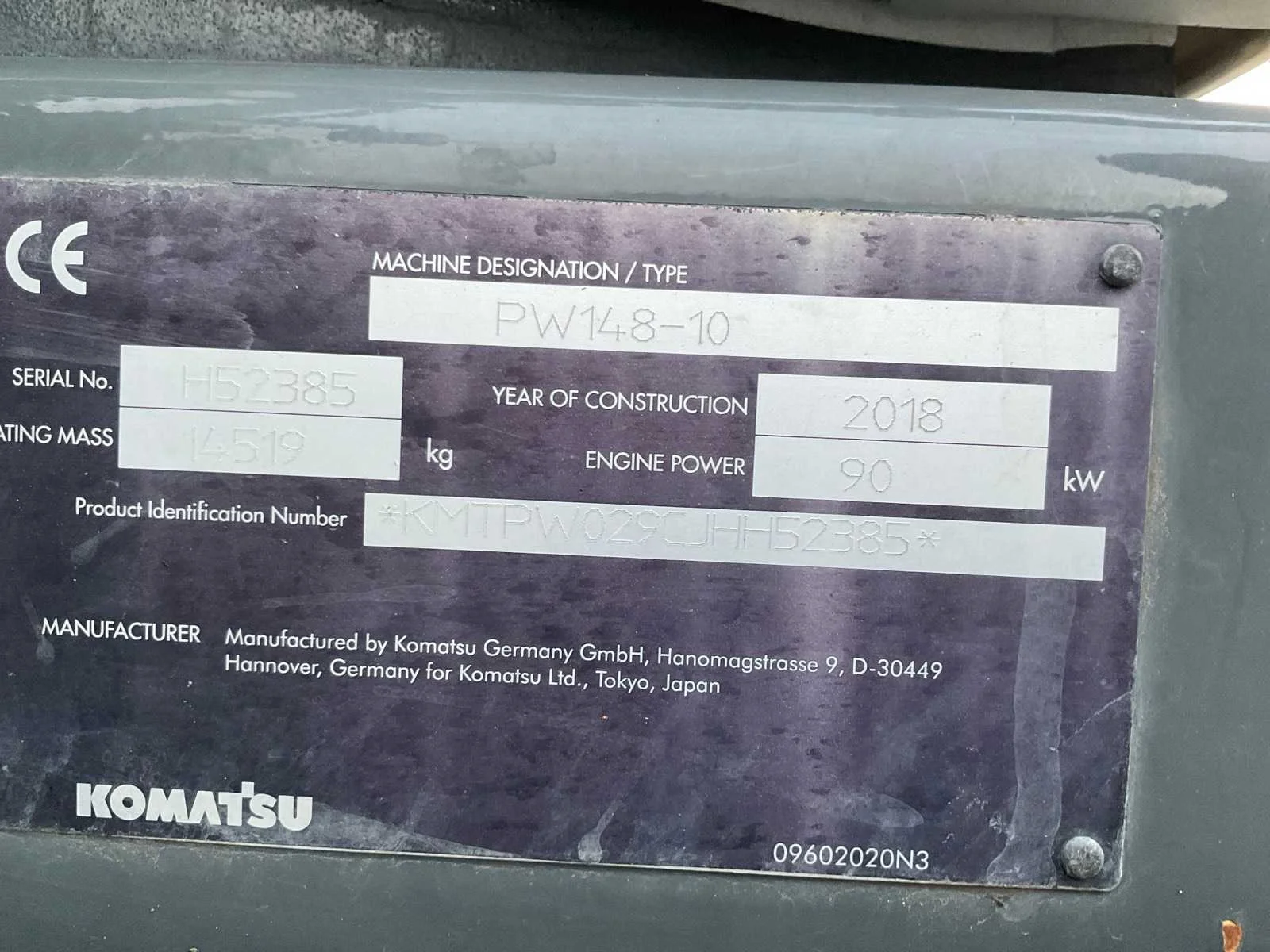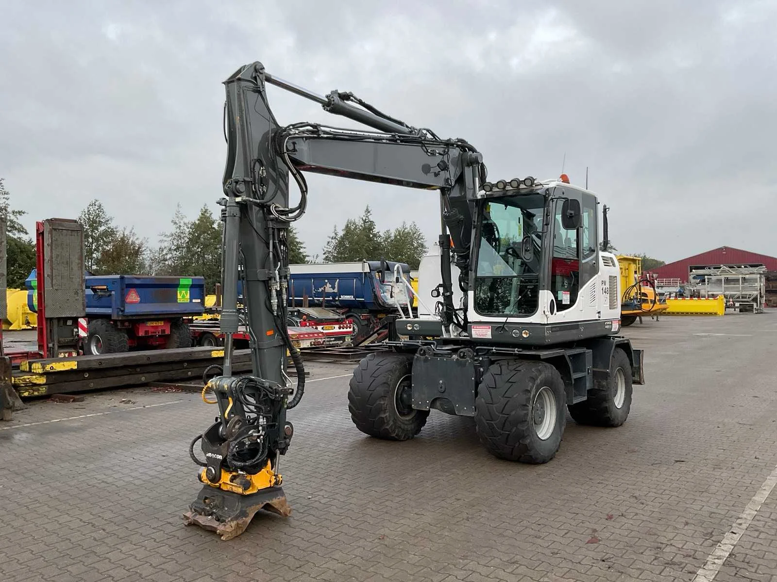 CW30 snelwissel, Encon draai-kantelstuk met hydraulische functie doorvoer, 2x dubbelwerkende hydraulische functie aan giek, stelgiek, hydraulische as afstempeling, hydraulisch schuifblad, 2x opbergkist, camera systeem, Topcon 3D GPS voorbereiding, automatische smering, airco, hi/lo schakeling, cruisecontrol, sloop/sorteerfunctie, Merk: Komatsu Type: PW148-10 Bouwjaar: 2018 Serienummer: KMTPW029CJHH52385 Kenteken: THB-53-L Merk motor: Komatsu Motorvermogen (kW): 90kW Aantal cilinders: 4 Brandstof: diesel Bedrijfsgewicht: 14519kg Gieklengte: 8000mm Bandenmaat: 600/50R22.5 Mitas Cabine: true Afgelezen urenstand: 9939 Totale afmeting L: 8000mm Totale afmeting Breedte: 2550mm Totale afmeting Hoogte: 3350mm
