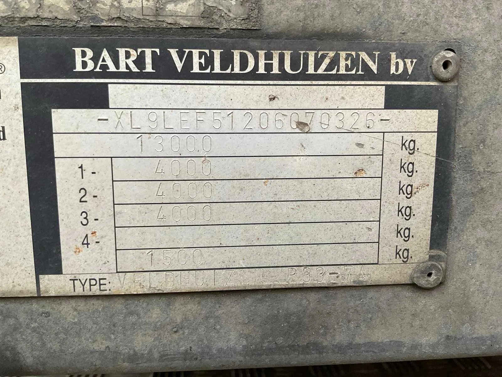 Gebruikersporen rondom, 3 assige oplegger, laadvloer afmetingen 5000+2600mm lengte, laadvloer hoogte 750mm en 1000mm, verstelbare rijbanen, opbergkist Kenteken: 80-VJX-9 Merk: Iveco Type: Daily 35C18 Bouwjaar: 2007 Chassisnummer: ZCFC35D100D342696 + VL9LEF51206070326 Afgelezen kilometerstand: 273995km Cilinderinhoud: 2998cc Vermogen (kW): 129kW Brandstof: diesel Datum eerste toelating: 2007-09-19 Datum eerste toelating (NL): 2007-09-19 APK vervaldatum: 2026-07-21 NAP status: Logisch Transmissie: Handgeschakeld Aantal zitplaatsen: 3 Kleur: Rood Nationaliteit documenten: Nederlandse Stuurwiel: Links Aantal deuren: 2 Aantal sleutels: 1 Ledig gewicht: 1900kg Laadvermogen: 1600kg Vermogen (pk): 175 Aantal cilinders: 4 Velgmaat: 16 Carrosserie: opleggertrekker Emissieklasse: 4 Startinformatie: Ja Maximaal trekgewicht ongeremd: 750 Self drive export possible : true