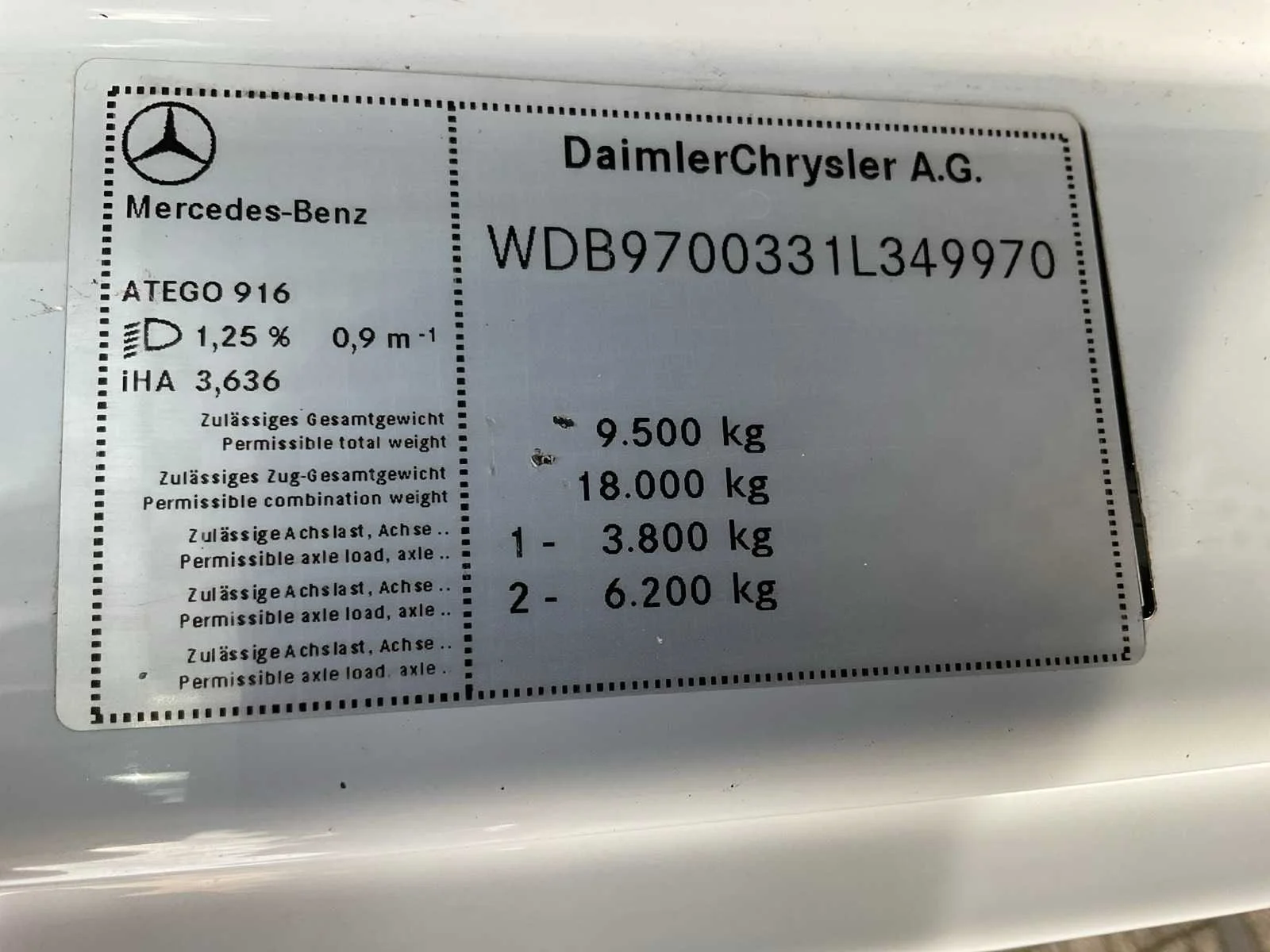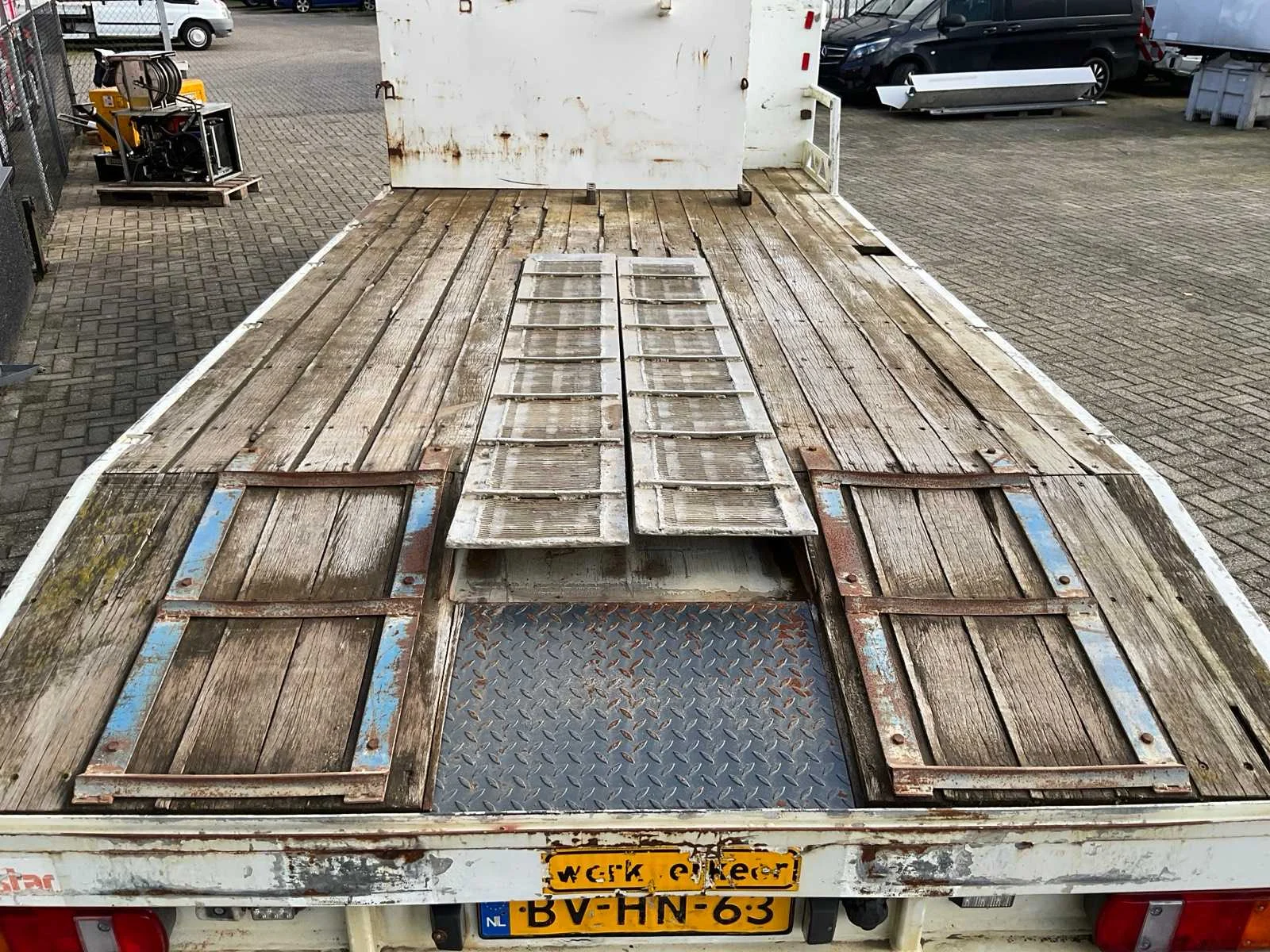 Afmeting laadvloer 5100x2350mm, laadvloer hoogte 950mm, 2x aluminium oprijdbanen, losstaande opslagbox 1800x700x1900mm, apk/mot is vervallen Kenteken: BV-HN-63 Merk: Mercedes-Benz Type: Atego 916 Bluetec5 Bouwjaar: 2008 Chassisnummer VIN: WDB9700331L349970 Cilinderinhoud: 4249cc Kilometerstand bij opname: 279102km APK vervaldatum: 2025-05-15 Datum eerste toelating: 2008-08-26 Datum eerste toelating (NL): 2008-08-26 Type transmissie: Automatisch Aantal assen: 2 Asconfiguratie: 2x2 Fuel Type: Diesel Laadvermogen: 4157kg Aantal sleutels: 2 Emissieklasse: 5 Startinformatie: Ja Nationaliteit documenten: Nederlandse Aantal zitplaatsen: 3 Diesel: true No self drive export!: true