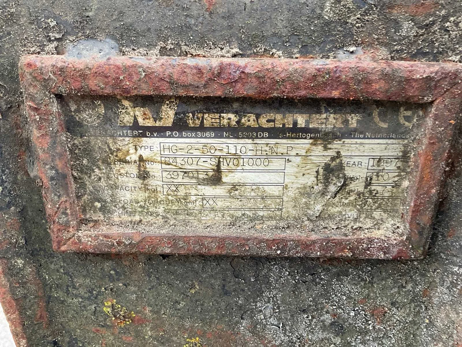 Merk: Verachtert Type: HG-2-50-110-H.N.P. Bouwjaar: 1997 Serienummer: 84307 Graafbak afm. l: 1000mm Graafbak afm. b: 1100mm Graafbak afm. h: 750mm Eigen gewicht: 410kg