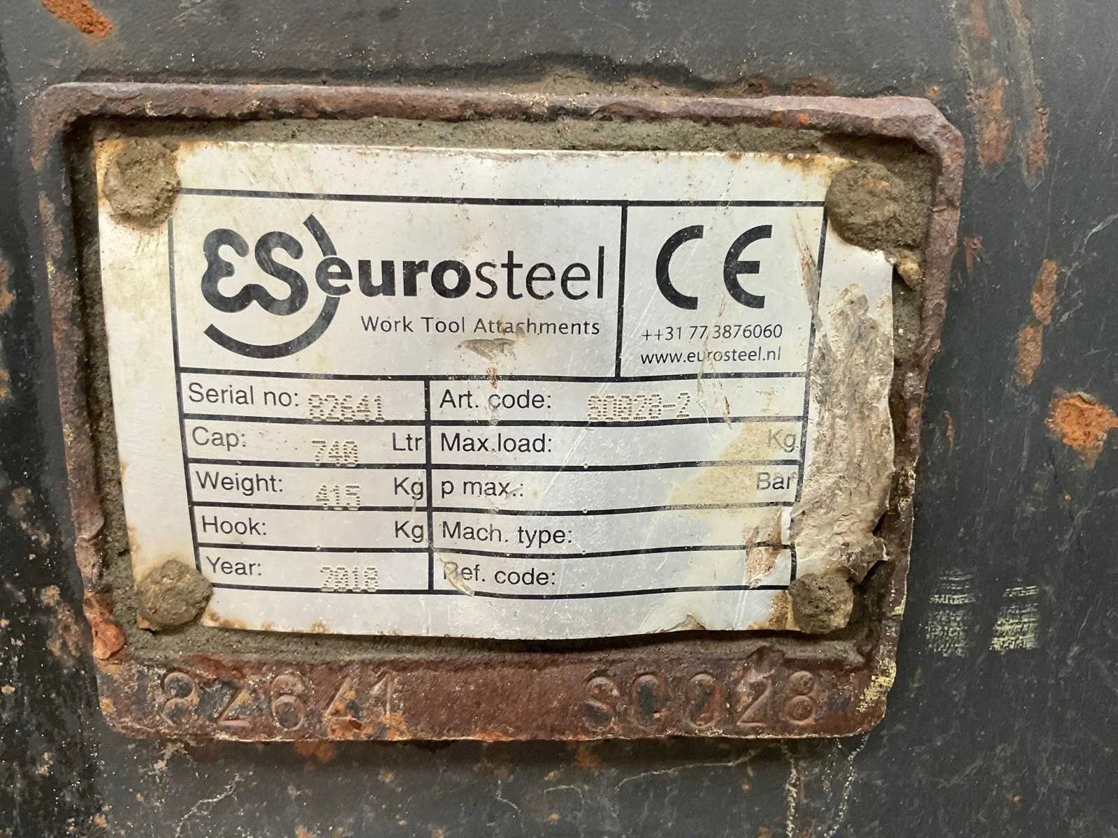 Merk: Eurosteel Type: S0028-1 Bouwjaar: 2018 Serienummer: 82641 Graafbak afm. l: 900mm Graafbak afm. b: 1800mm Graafbak afm. h: 550mm Eigen gewicht: 415kg Totale afmeting L: 900mm Totale afmeting Breedte: 1800mm Totale afmeting Hoogte: 800mm
