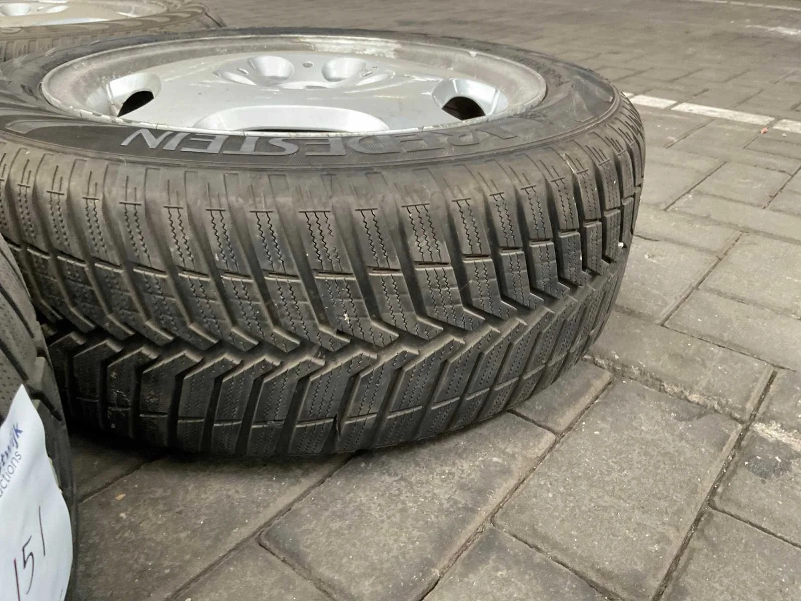 Winterband, afkomstig van Mercedes-Benz Merk: Dunlop / Vredenstein Bandenmaat: 215/55R16 Velgsoort: Aluminium Velgmaat: 16 Met velg: true
