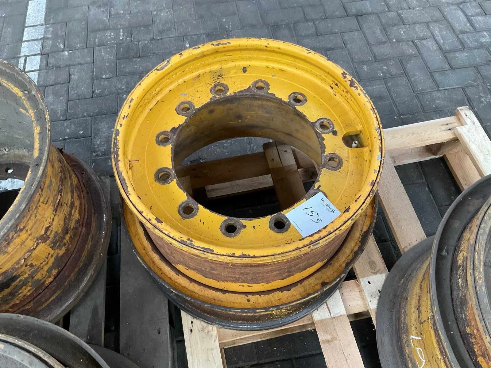 12 gaats, naafgat 370mm, steek 425mm, ruimte tussen velgringen bedraagt 430mm, afkomstig van Volvo L90D Merk: Volvo Type: 25” Wiellader Maat (getal): 25''