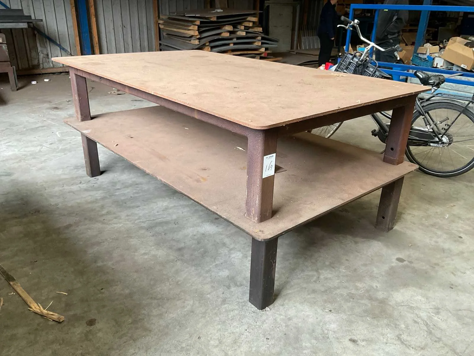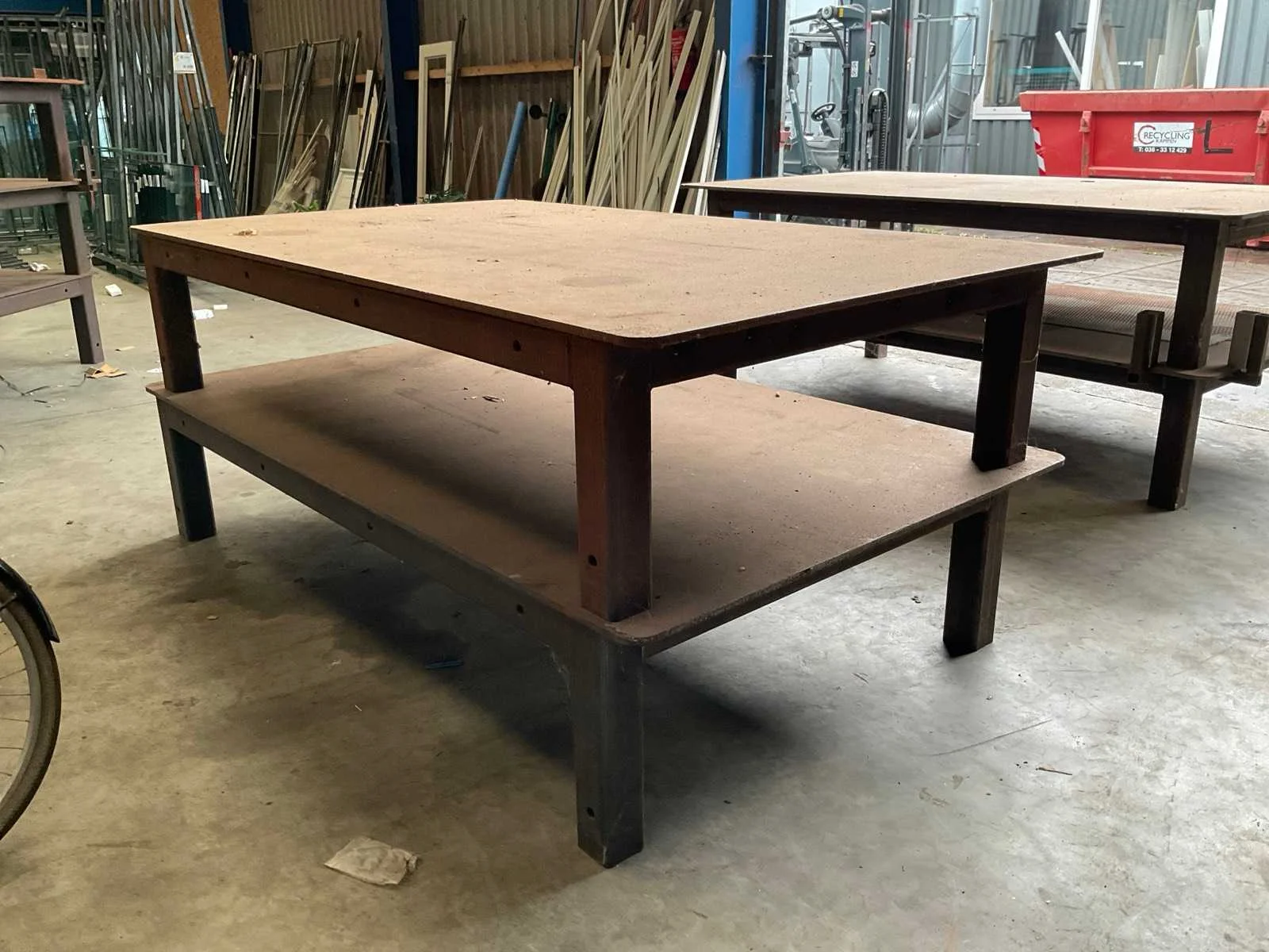 15mm plaat, koker 100x100mm frame Lengte: 248cm Breedte: 147cm Hoogte: 52cm