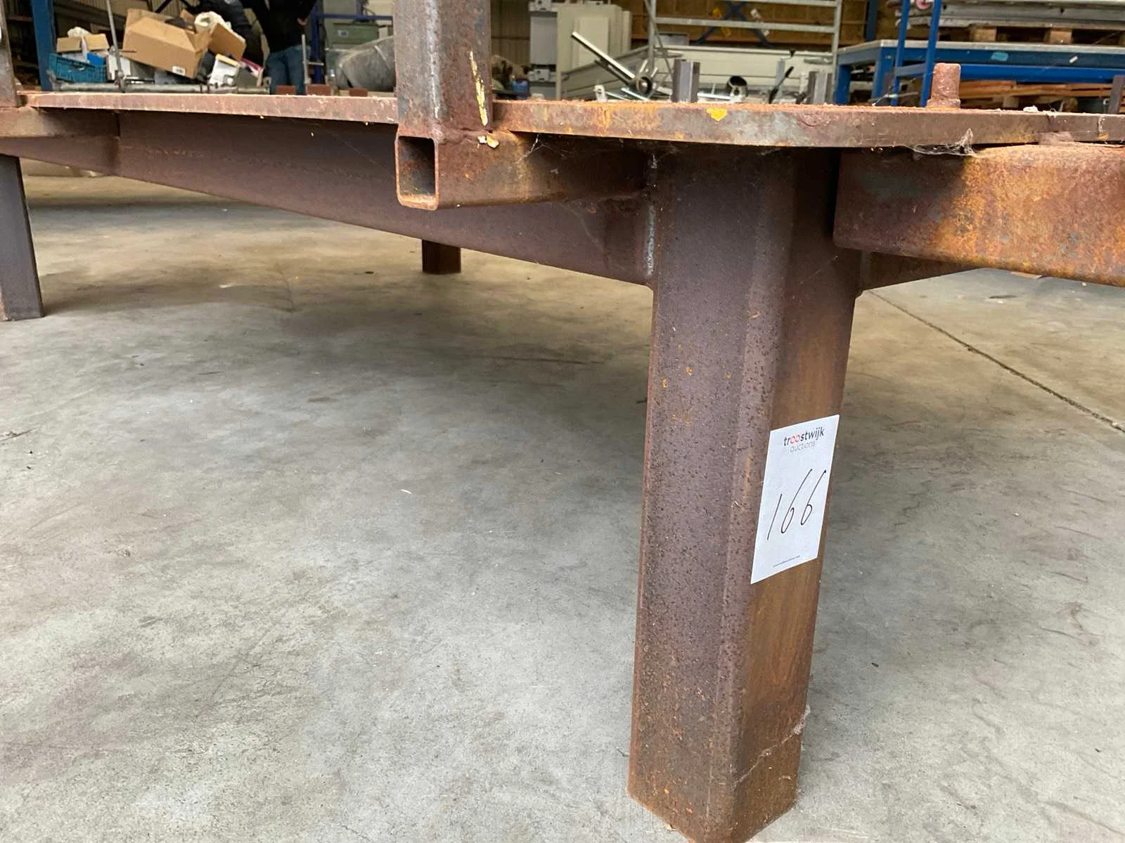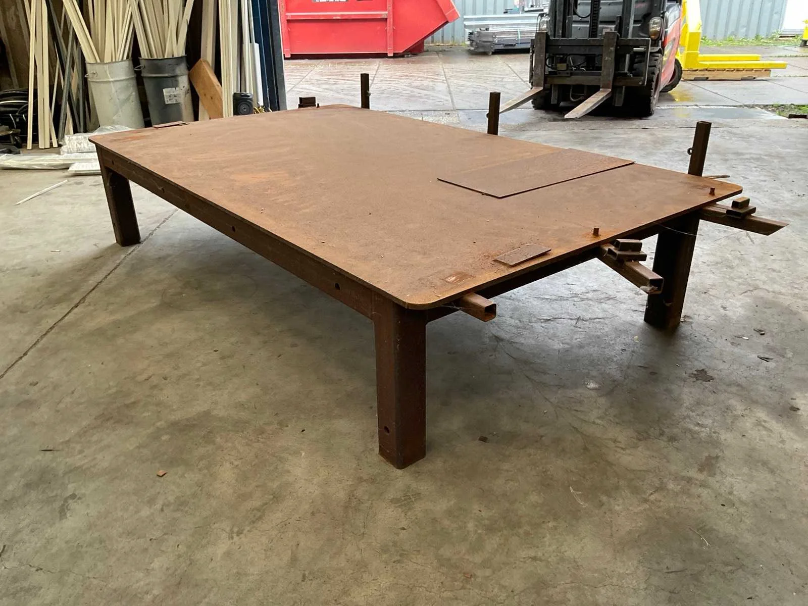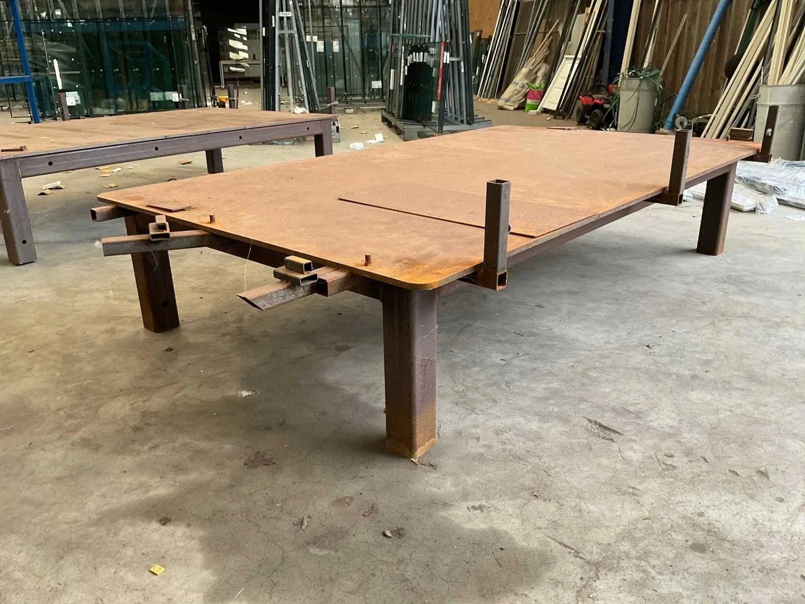 15mm plaat, koker 100x100mm frame Lengte: 248cm Breedte: 147cm Hoogte: 52cm