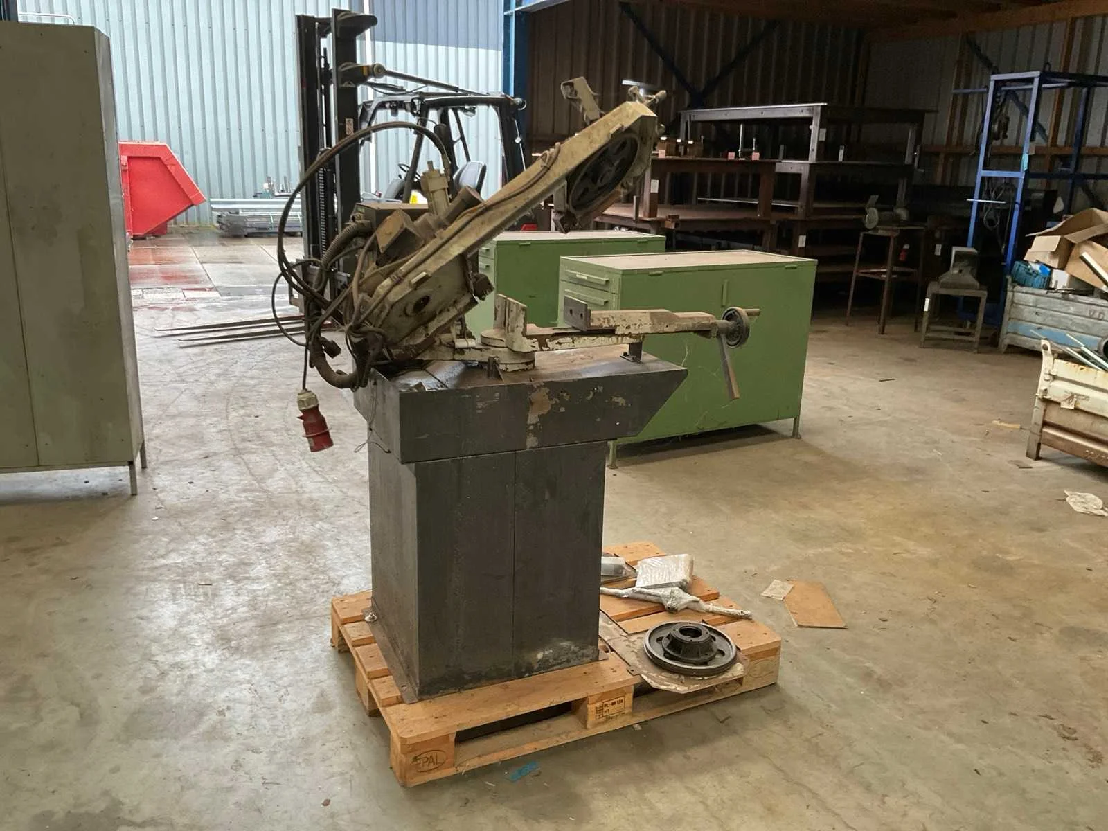 Let op, tandwiel elektromotor defect, compleetheid onderdeel is onbekend Merk: Pegas Type: 150x200 GH-R Bouwjaar: 2015 Serienummer: 1500211046 Verstekhoek max.: 45° Koelmiddelpomp: true Motorvermogen (kW): 1.2kW Aansluiting: 400V Handboek aanwezig: true Afmeting l: 1500mm Afmeting b: 800mm Afmeting h: 1700mm