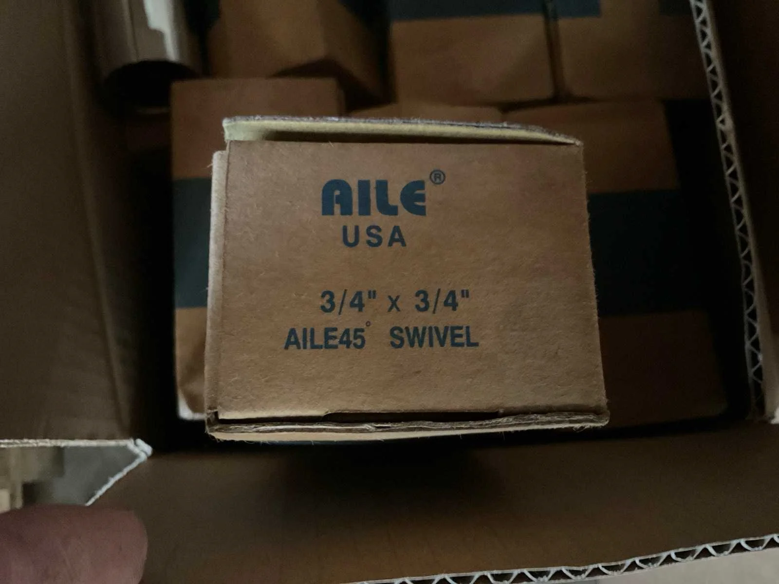 Betreft 3 dozen koppelingen voor brandstof/vloeistoffen en 1 doos Elaflex MB50 2” tankdoppen, 35 stuks Merk: Aile Product type: 3/4”x3/4”